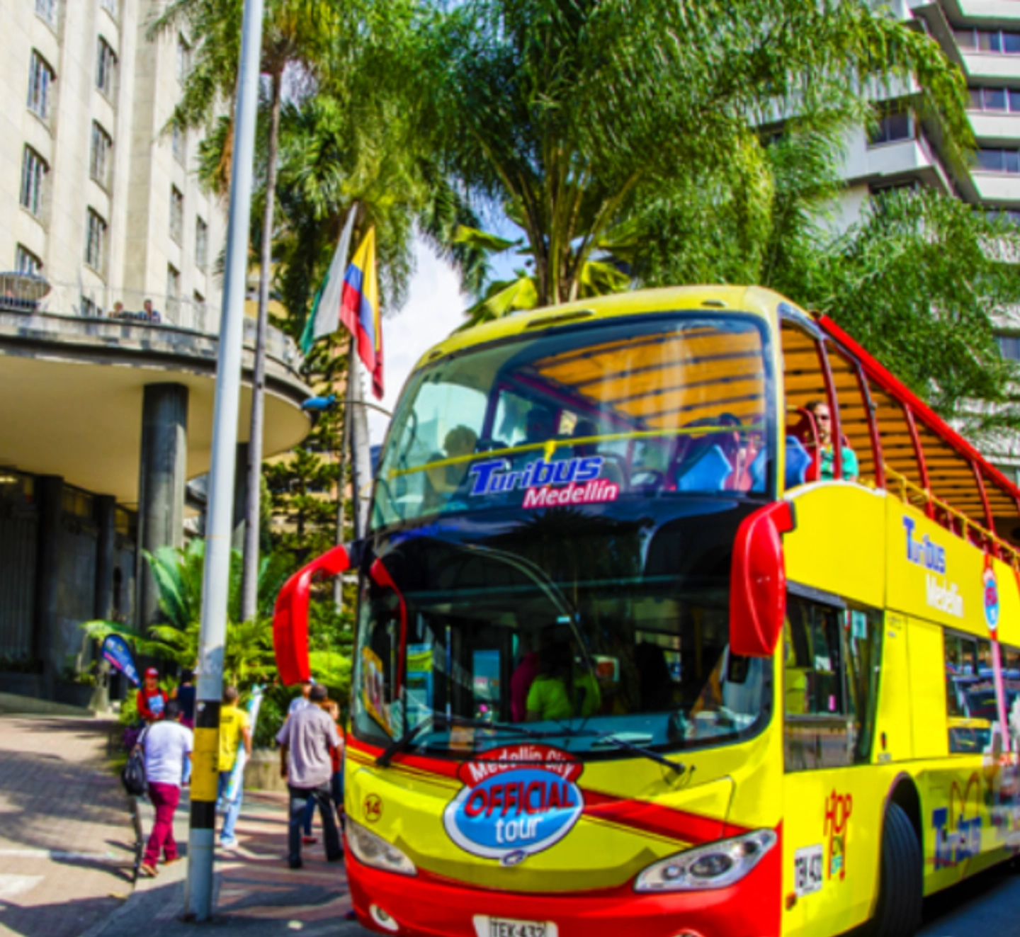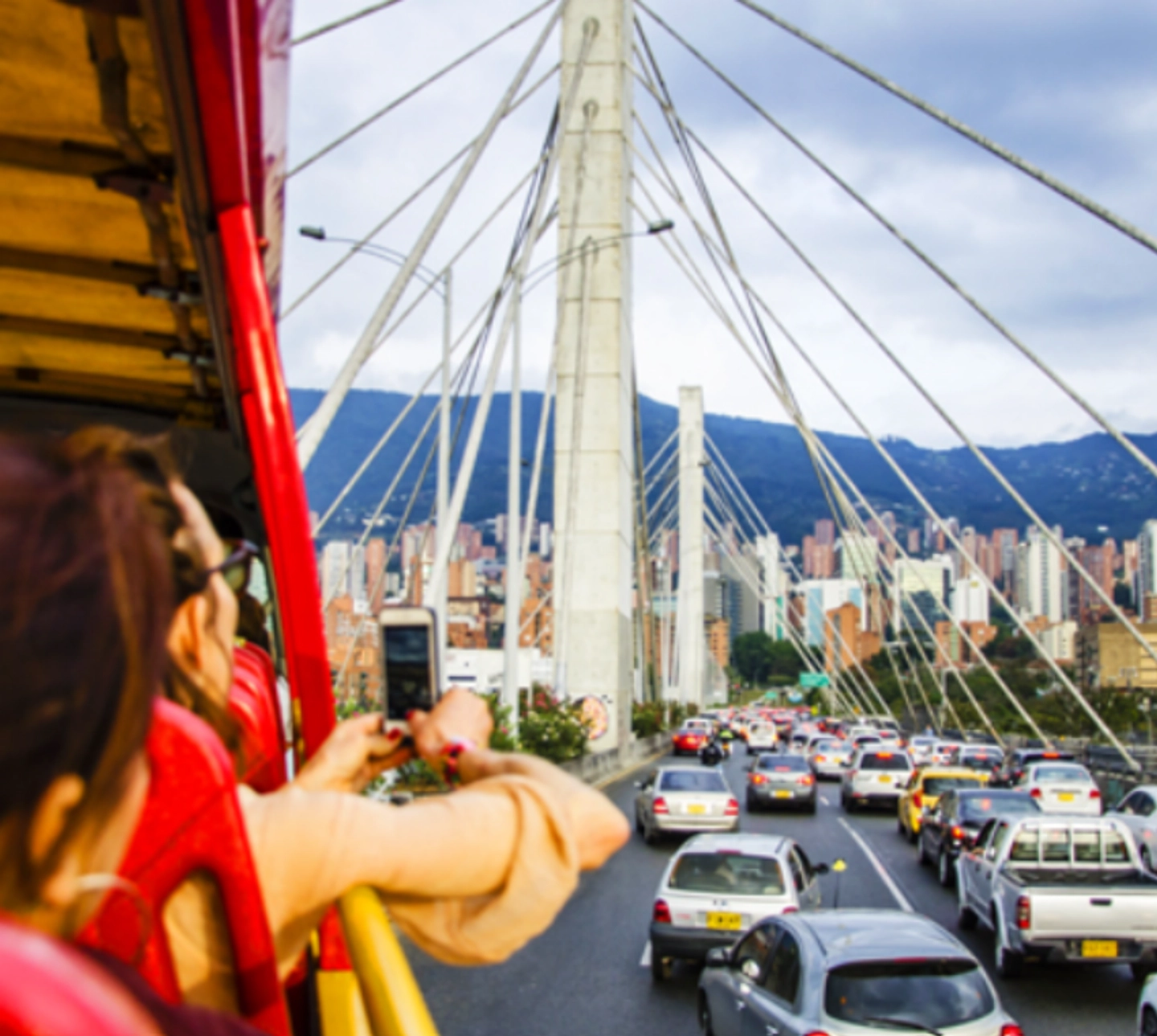 Comienza la experiencia a bordo de un vehículo tipo Turibus para conocer la cultura, historia y principales calles de Medellín.