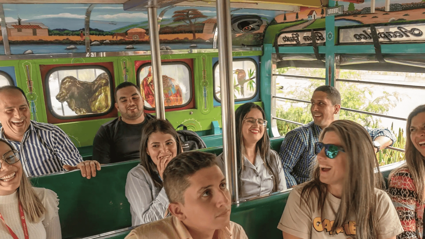 Free tour en chiva por Medellín para recorrer los principales atractivos de la ciudad en un vehículo tradicional colombiano.