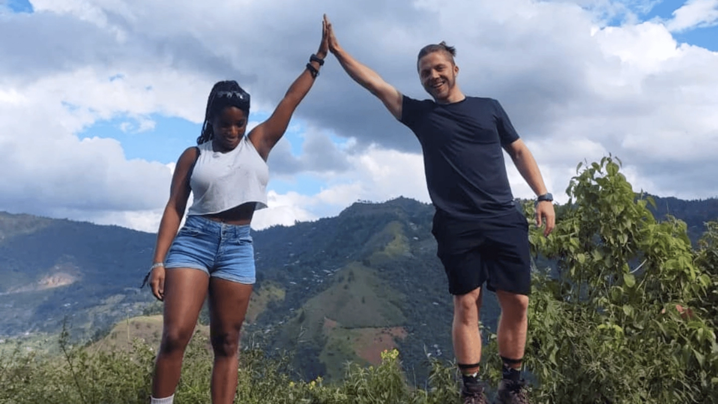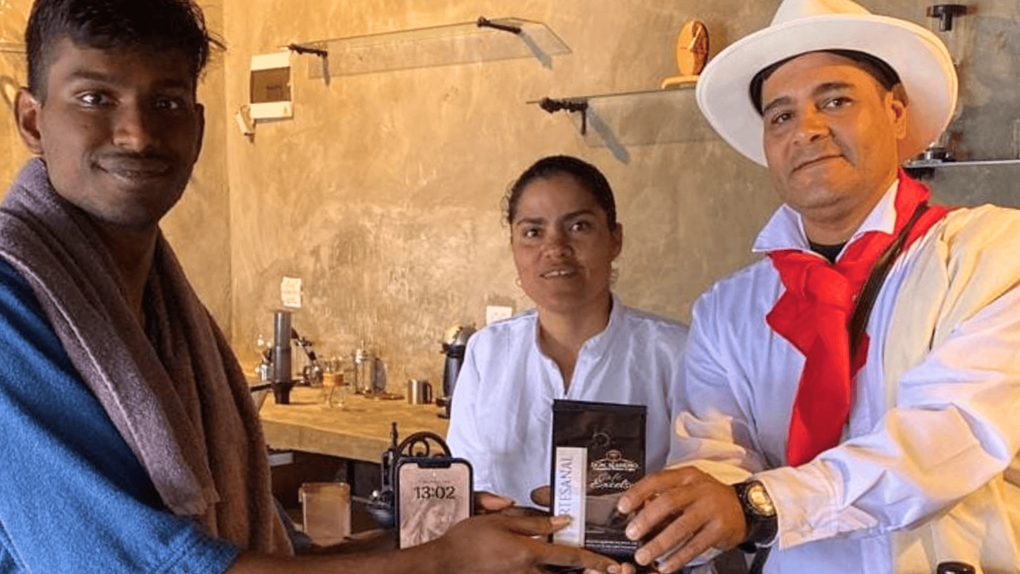 Ingreso a una finca de 18 hectáreas ubicada en entorno de montaña, con vistas naturales y cultivos de café de especialidad, maíz y cebolla larga.