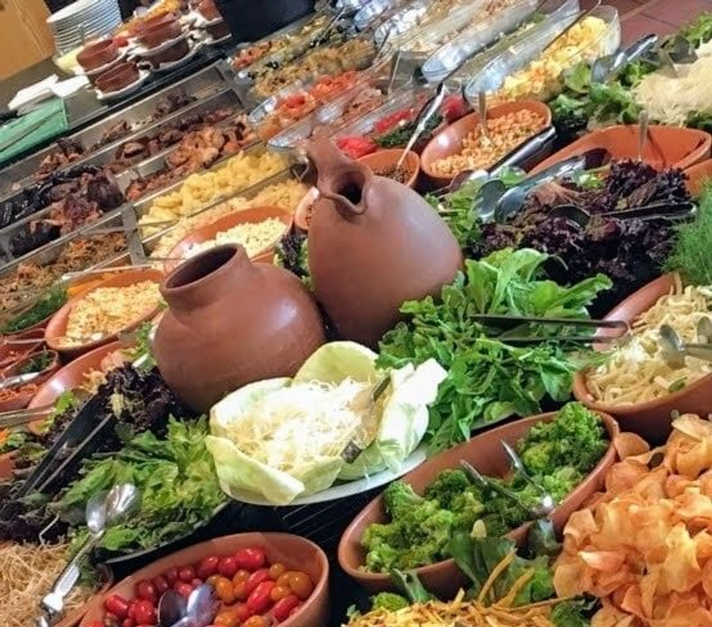 Al medio día, almuerzo criollo buffet: Asado a leña, Mesa vegetariana completa (Verduras y hortalizas regionales) - (Bebidas no incluidas)