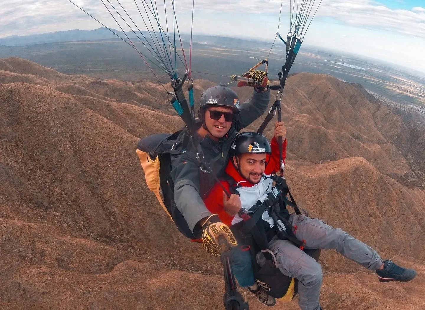 La aventura comienza con el encuentro con tu instructor experto, quien te guiará en un ascenso por los caminos de la precordillera hasta la cima del Cerro Arco. Una vez en el punto de despegue, recibirás una charla técnica y de seguridad detallada mientras te equipas. Disfrutarás de las primeras vistas panorámicas de la ciudad de Mendoza y la imponente Cordillera de los Andes, sintiendo la anticipación y la brisa de la montaña antes del gran momento.