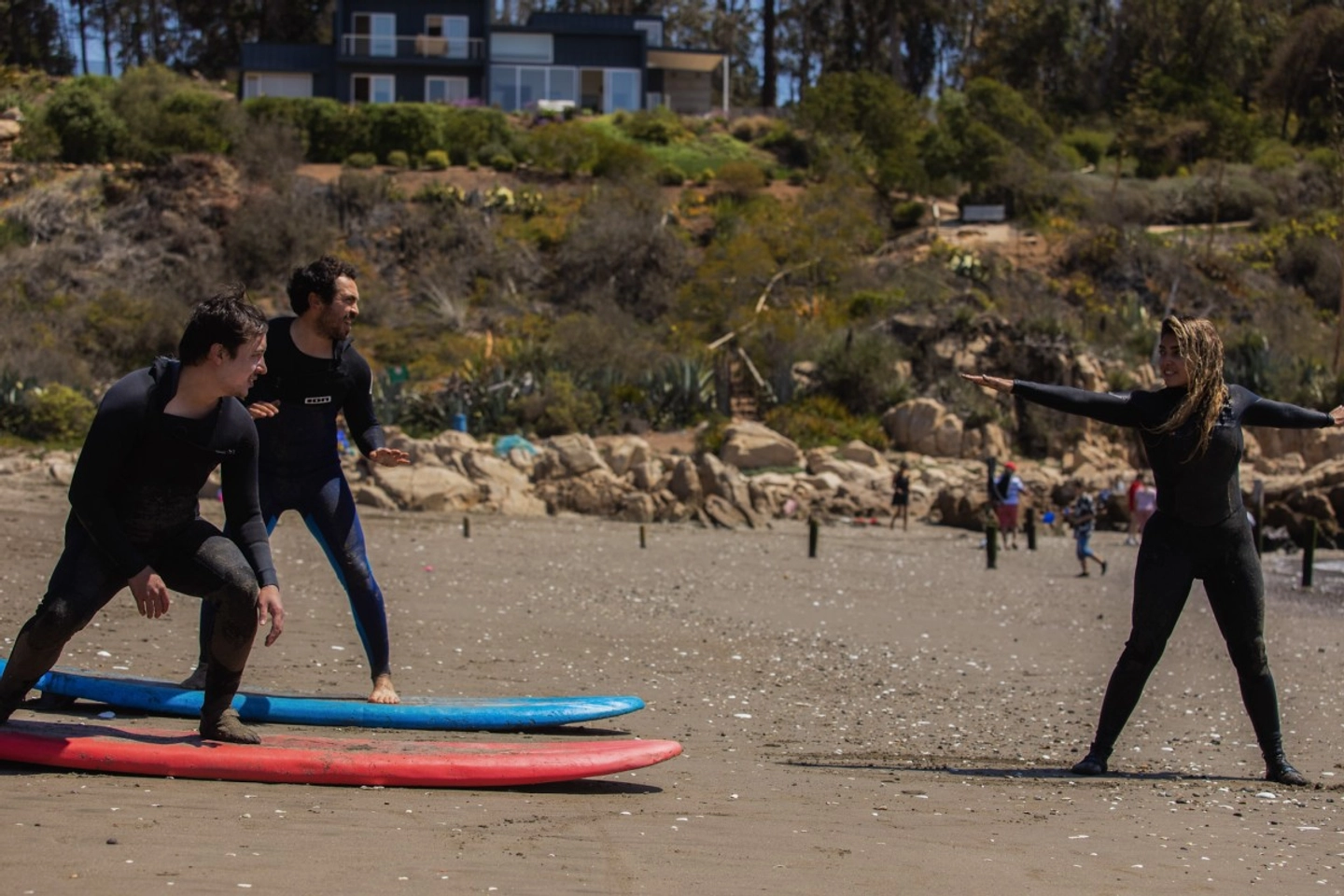 Técnica básica en arena, seguridad, lectura del mar y práctica de take off