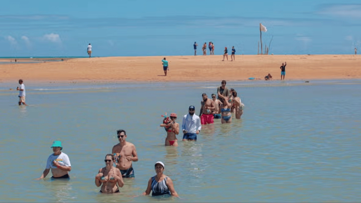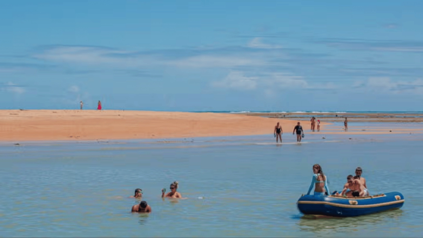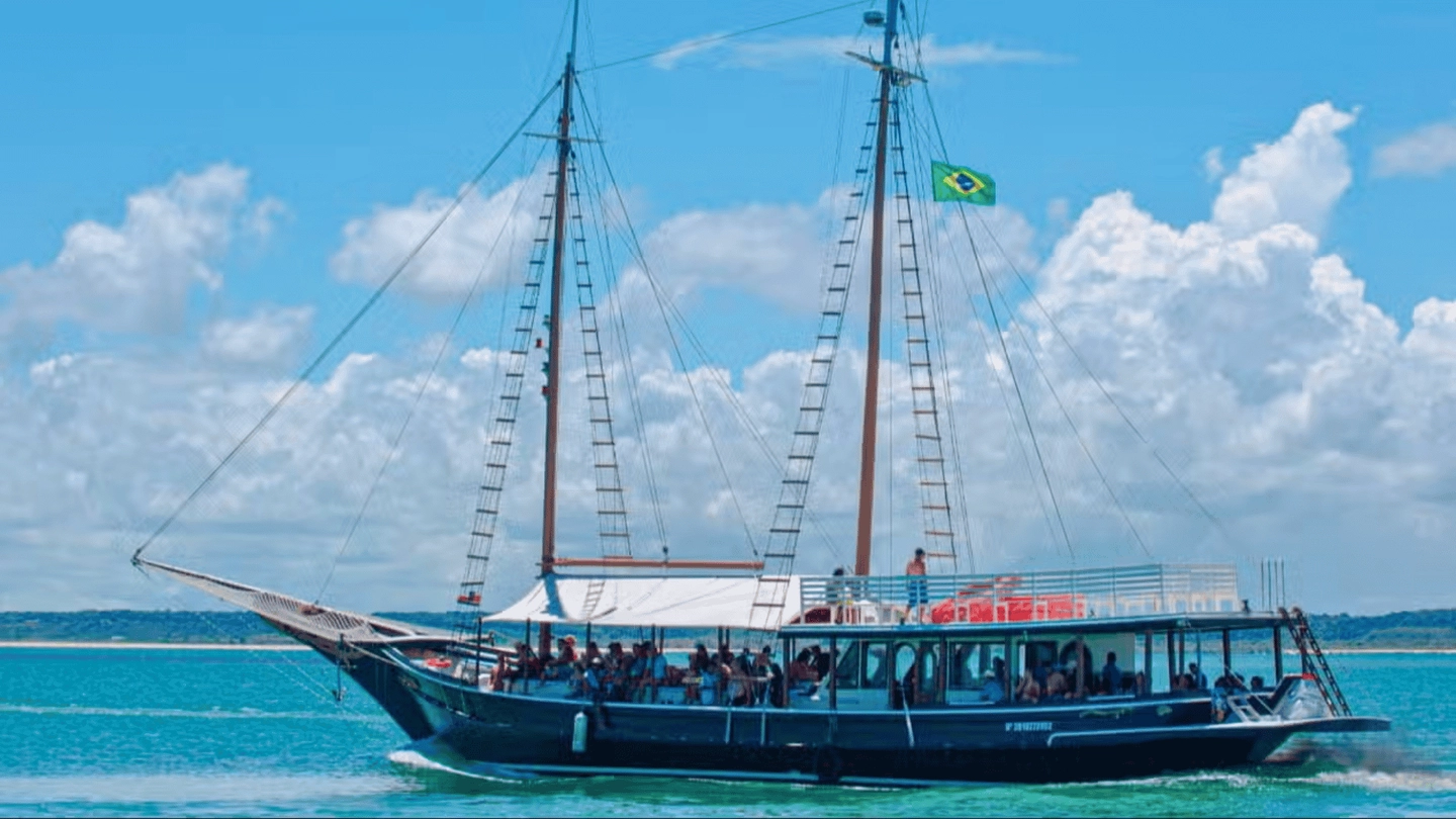 Excursión al Parque Marino de Coroa Alta desde Porto Seguro con navegación en velero. Recorre bancos de arena, arrecifes de coral y piscinas naturales.