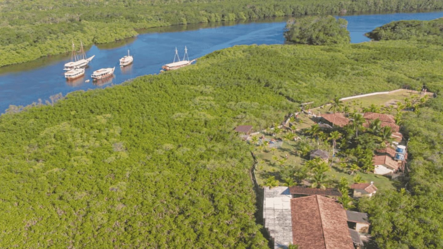 Inicio del recorrido desde la desembocadura del río João de Tiba navegando por el Parque Marino de Coroa Alta.