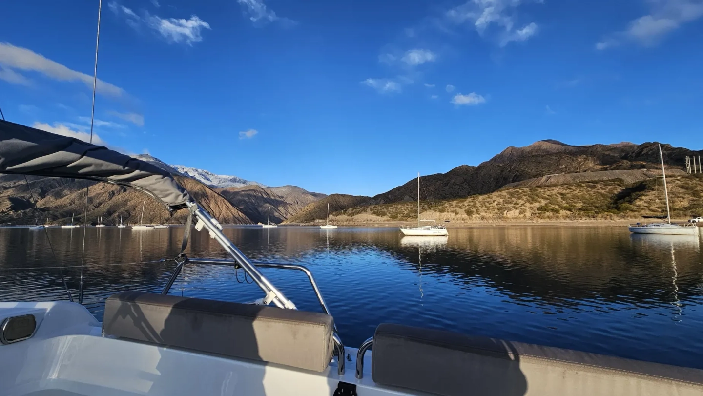 La experiencia comienza al zarpar en nuestro velero sobre las tranquilas aguas del Dique Potrerillos. Déjate cautivar por la inmensidad del paisaje, con la imponente Cordillera de los Andes como telón de fondo. Sentirás el aire puro de la montaña y el suave deslizamiento del barco, una invitación a la desconexión total.