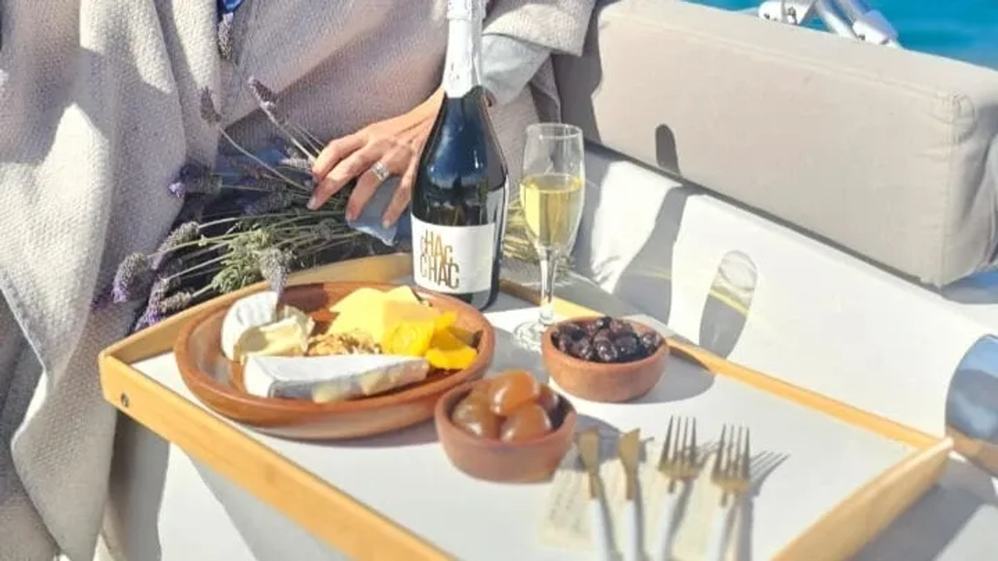 En el momento de máxima serenidad, fondearemos para que puedas disfrutar plenamente del silencio del agua y la majestuosidad del entorno. Te deleitaremos con una exquisita copa de vino mendocino acompañada de una selecta tabla de quesos, creando el maridaje perfecto entre sabores locales y un paisaje inolvidable.