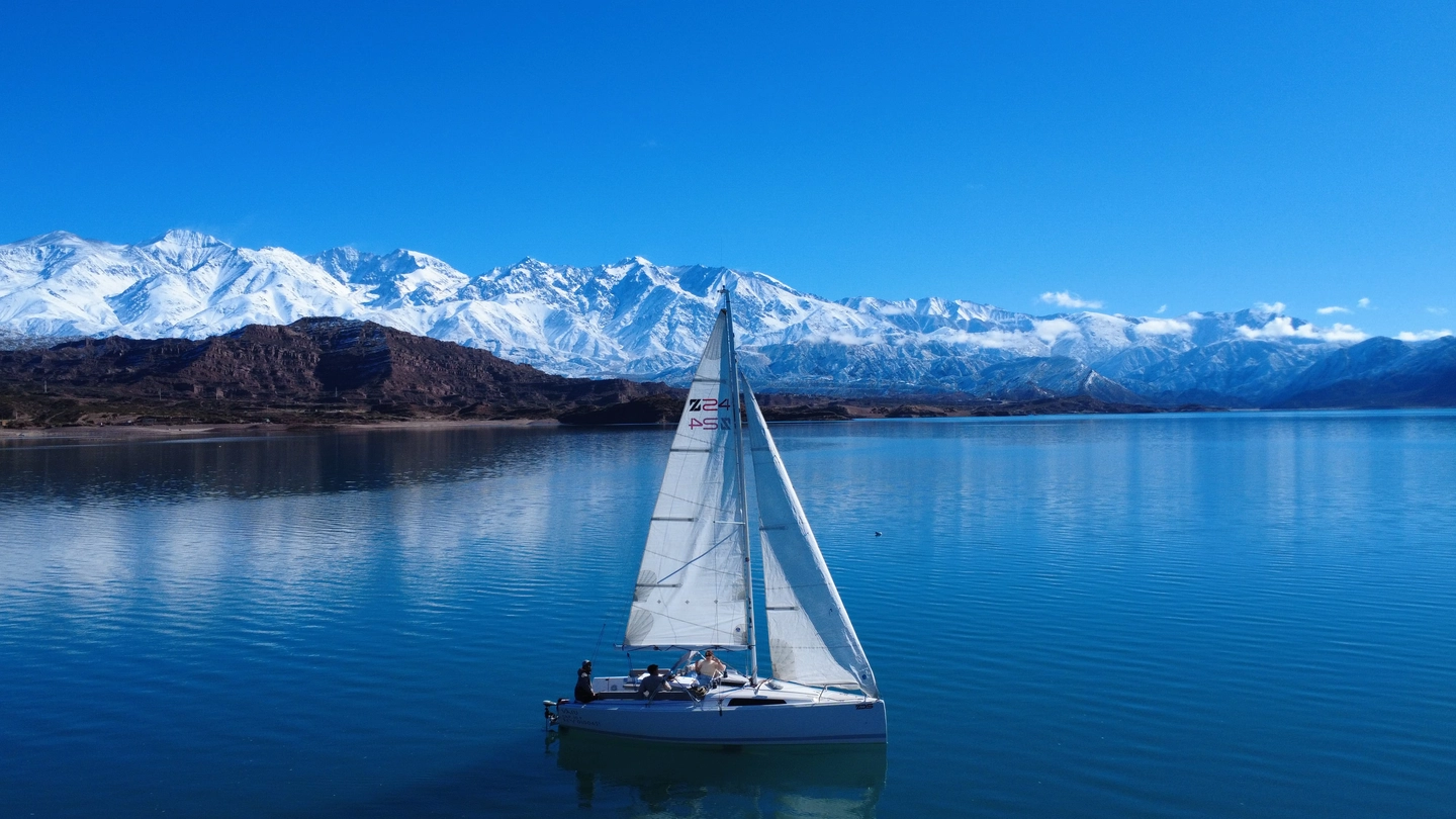 Disfruta una navegación en velero por el embalse Potrerillos, en Mendoza, rodeado por montañas de la Cordillera de los Andes. Durante el recorrido, contempla el paisaje desde el agua mientras degustas vinos mendocinos y quesos regionales a bordo.