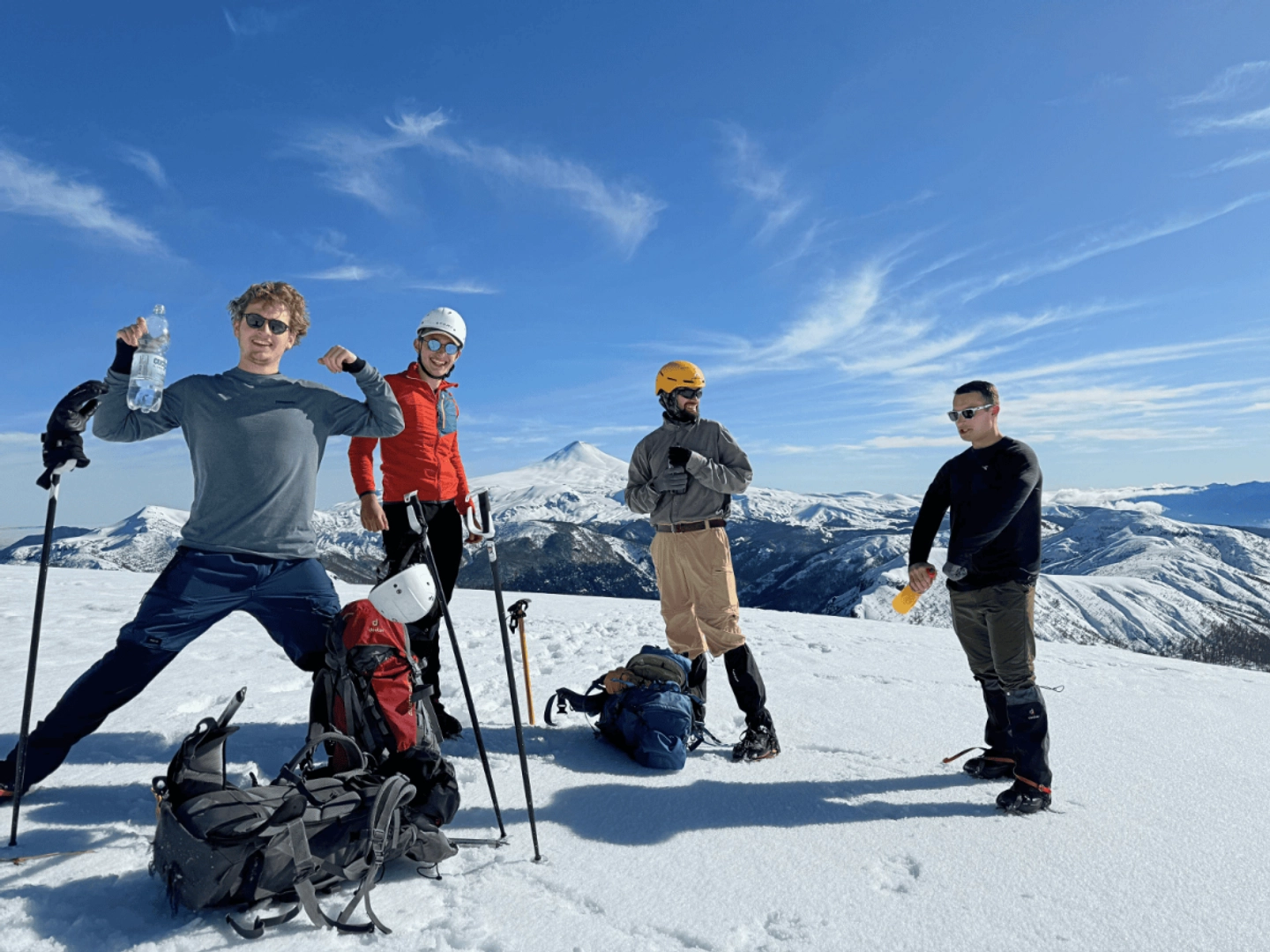 - Equipamiento técnico (zapatos de alta-media montaña, crampones, piolet, casco, mochila 60L, cubrepantalón, chaqueta cortaviento, entre otros)