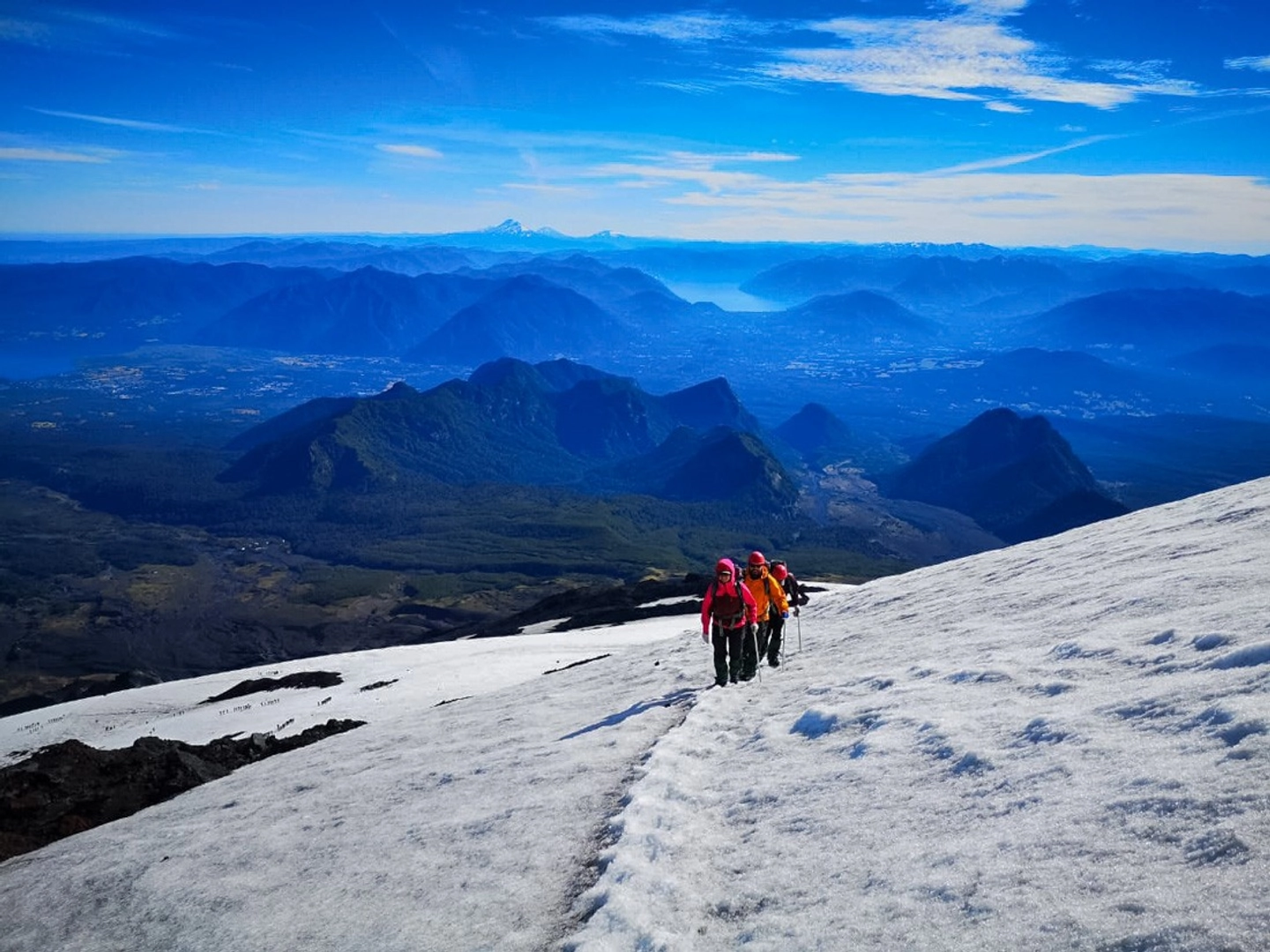 Caminamos hasta la cima, cruzando el glaciar con técnicas de montañismo bajo la guía de expertos.