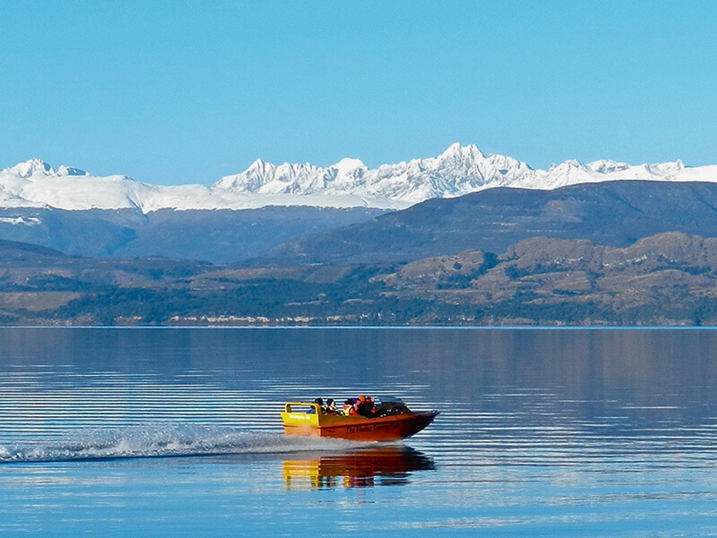 Embárcate en una aventura completa por la Carretera Austral, donde sentirás la adrenalina del jet boat mientras navegas por rápidos y aguas poco profundas. Tras una caminata por senderos remotos, llegarás al Lago General Carrera, donde disfrutarás de un almuerzo con vistas espectaculares, mientras observas los bloques de hielo desprenderse en el lago.