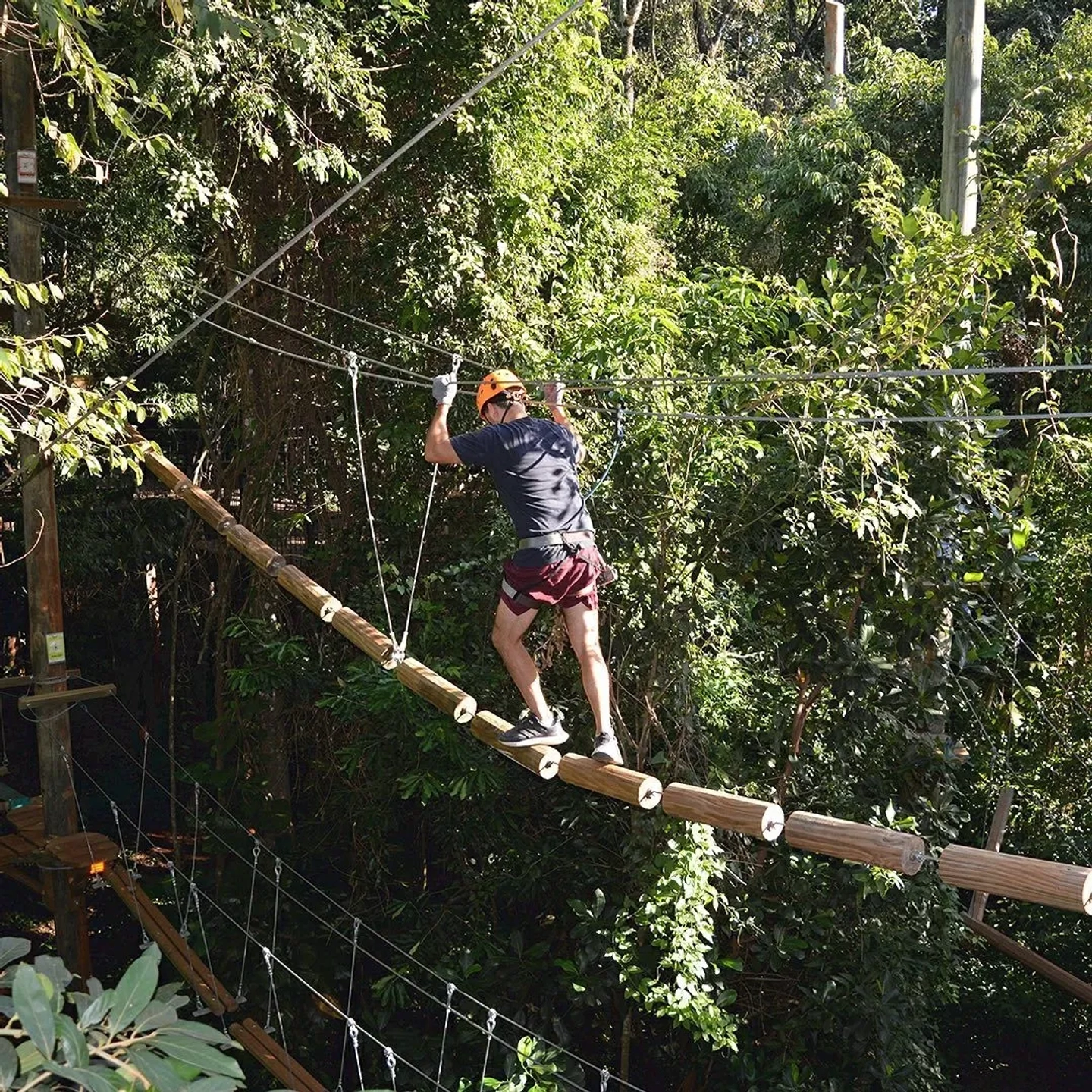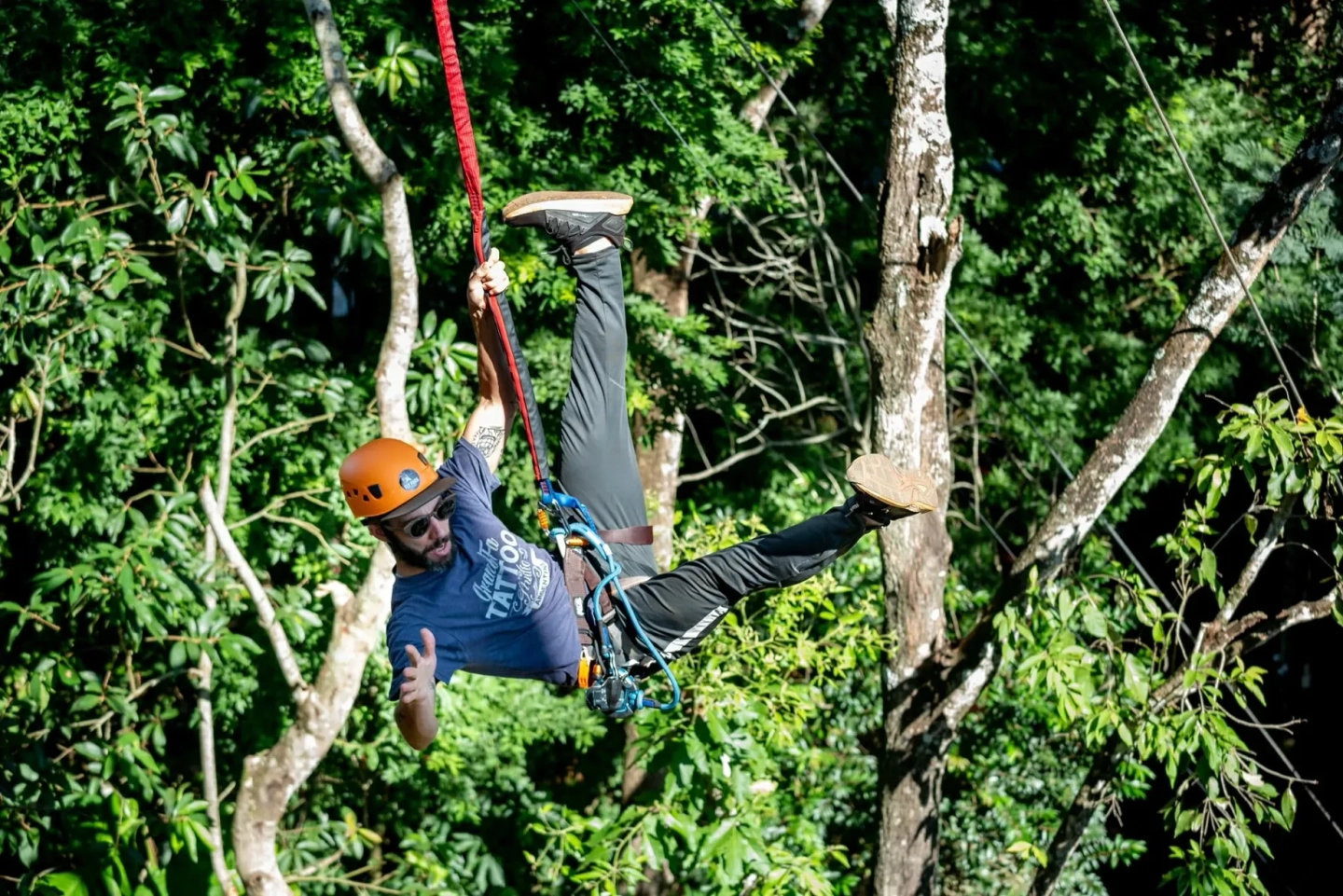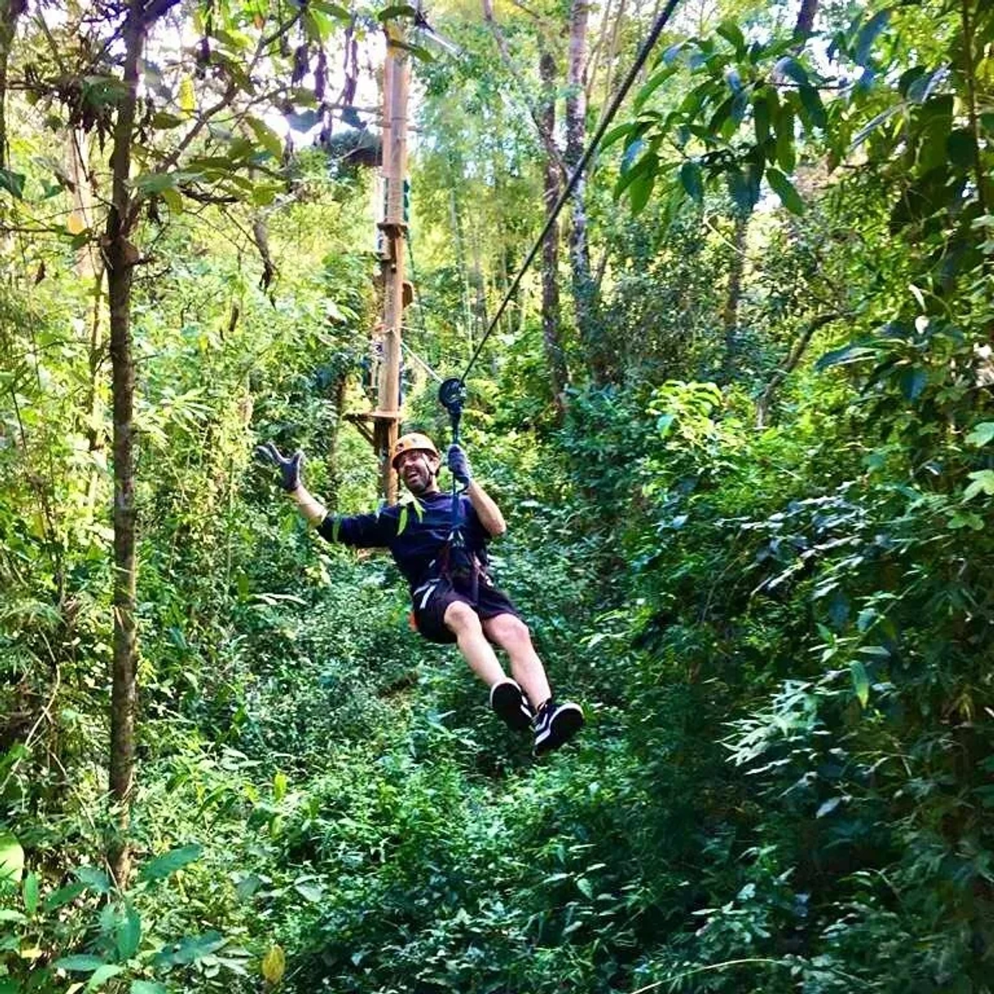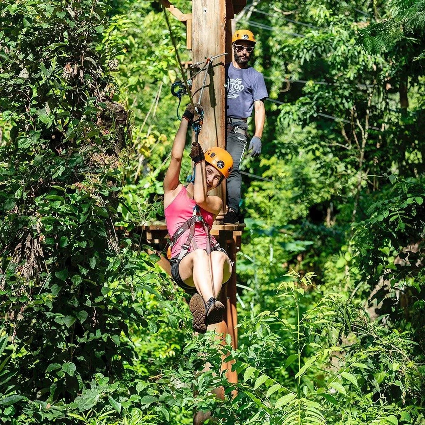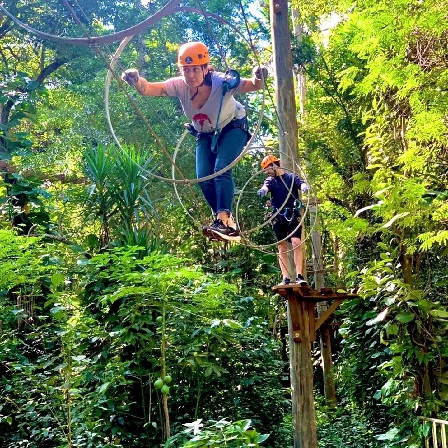 La experiencia comienza con un paseo por los espectaculares puentes colgantes, poniendo a prueba tu equilibrio mientras te sumerges en el paisaje de la selva. Siente la emoción de deslizarte por las tirolesas, volando entre los árboles y disfrutando de vistas panorámicas únicas. Es el calentamiento perfecto para la adrenalina que está por venir, ideal para compartir risas y superar los primeros desafíos en grupo.