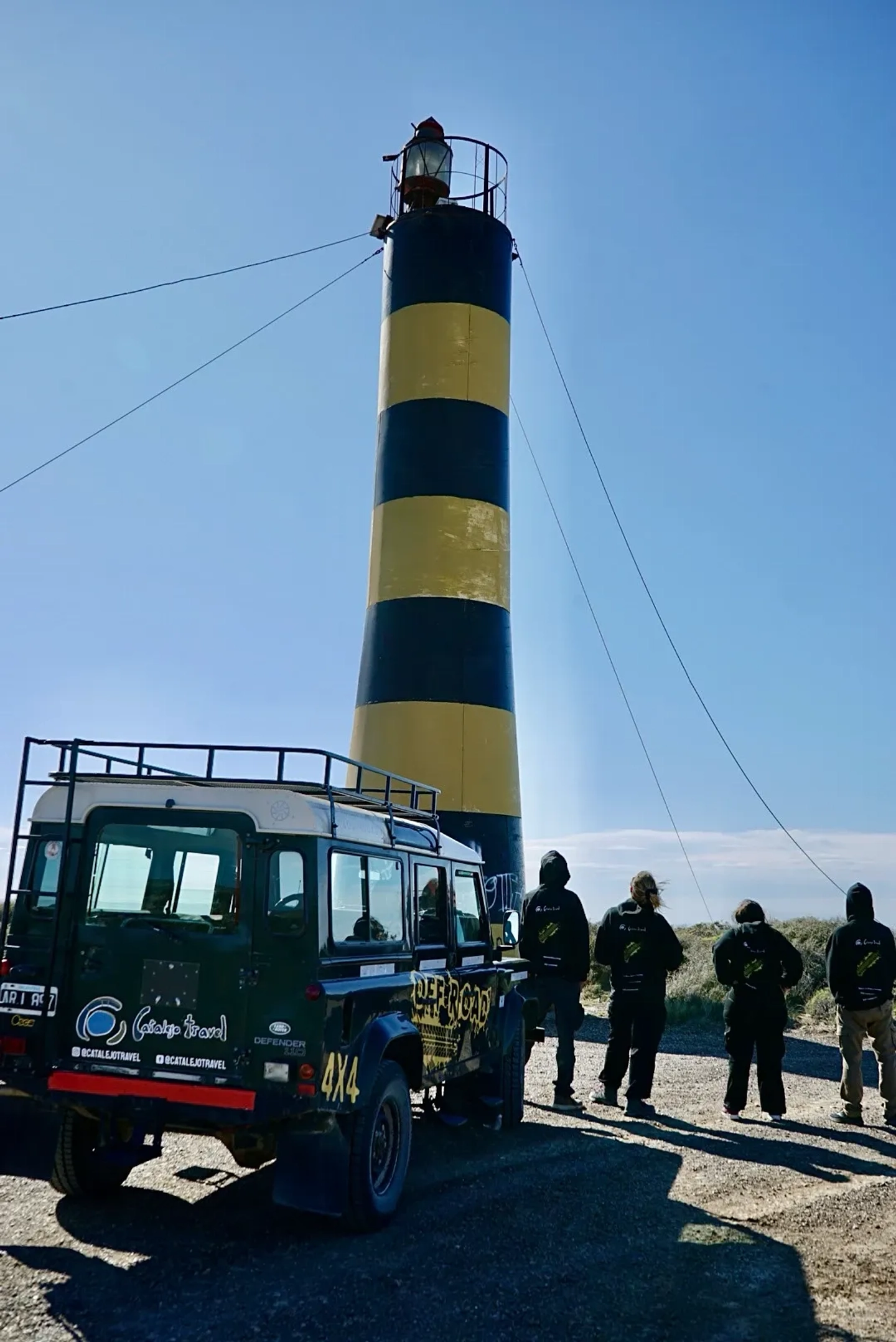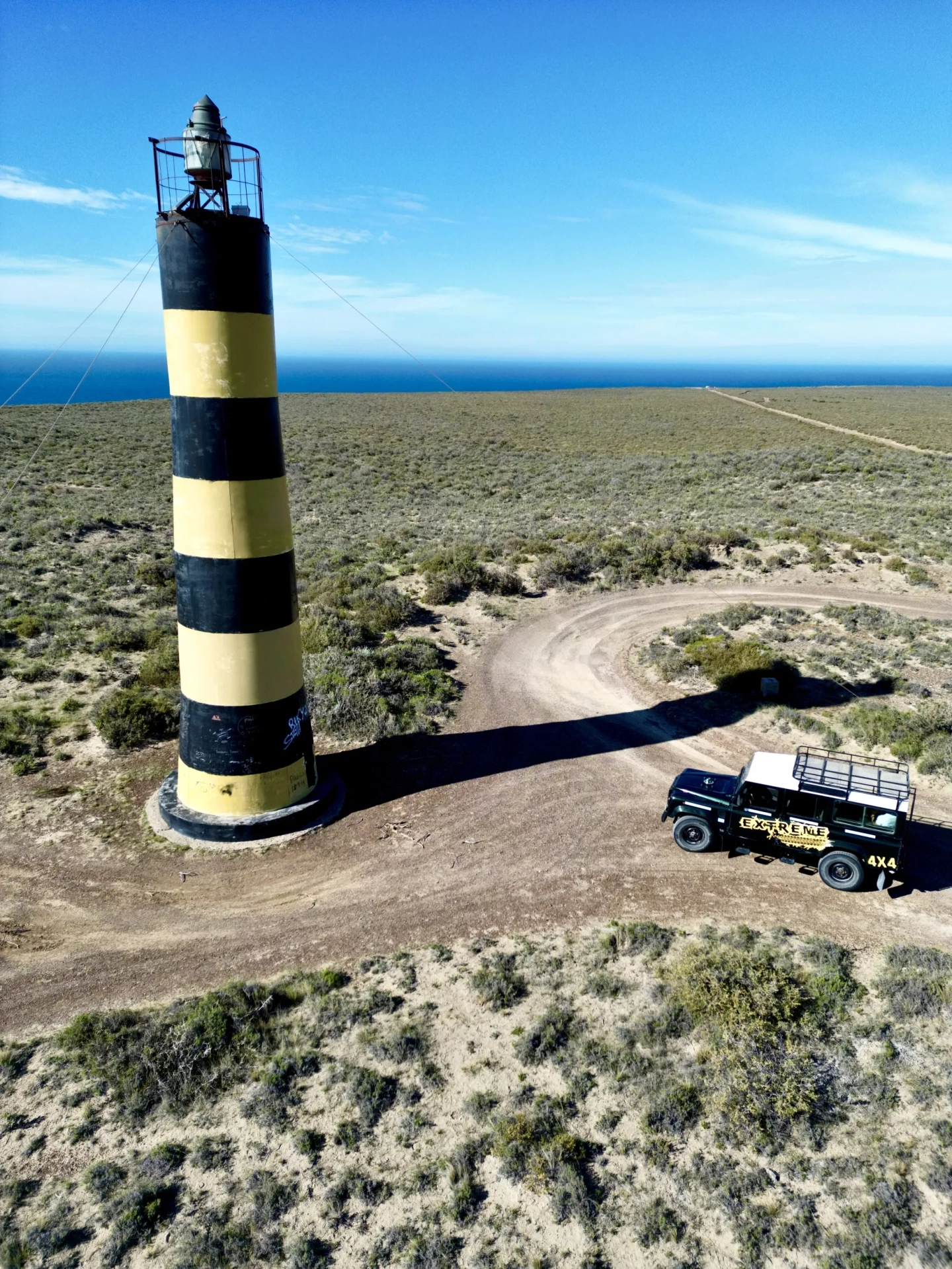 La expedición comienza a bordo de un vehículo 4x4, atravesando caminos remotos y desafiantes de la estepa patagónica. El objetivo es alcanzar el histórico faro de Punta Ninfas, desde donde se obtienen vistas panorámicas e inolvidables del océano Atlántico. Luego, la adrenalina se dispara con un descenso controlado por sogas por los imponentes acantilados, una forma emocionante y segura de acceder a las playas secretas que nos esperan abajo.