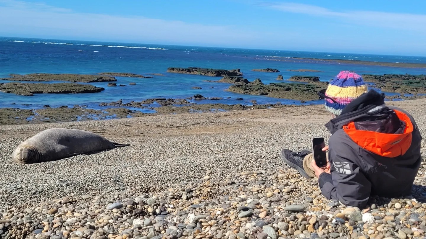Una vez en la base del acantilado, te adentrarás en un santuario de naturaleza virgen. Realizaremos una caminata respetuosa por la costa, donde tendrás la oportunidad única de observar de cerca y en su hábitat natural a una colonia de elefantes marinos. Serás testigo del comportamiento de estos gigantes del mar en playas solitarias, una experiencia íntima y conmovedora con la fauna salvaje de la Patagonia.