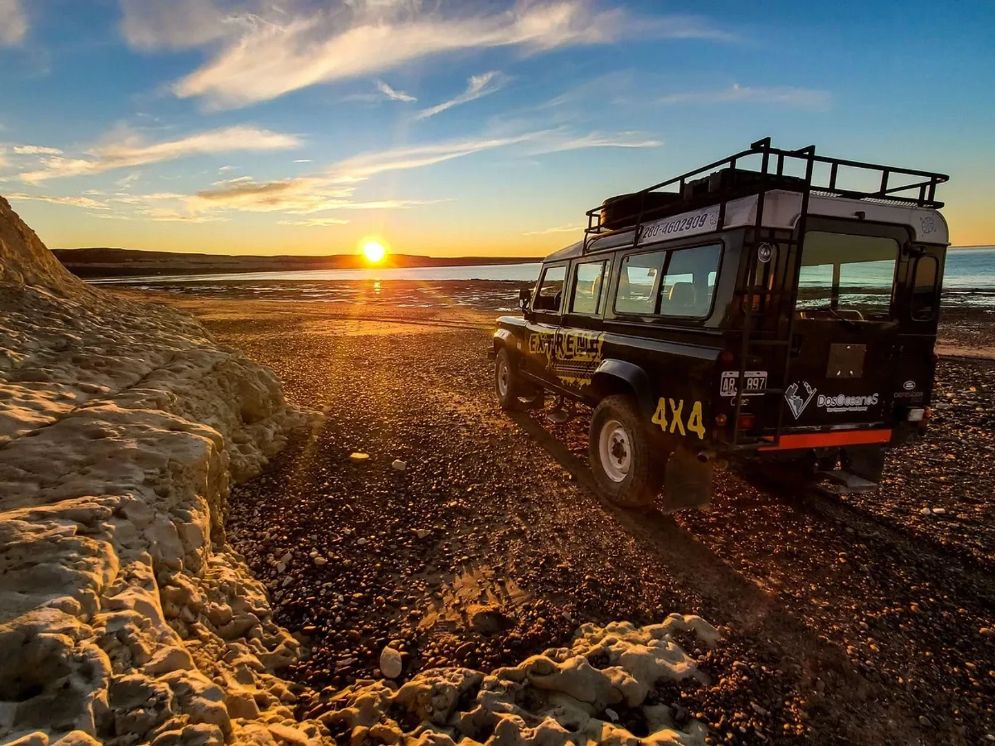 La jornada comienza con una emocionante travesía en vehículos 4x4 que nos llevará por caminos inaccesibles a lo largo de la costa cercana a Puerto Madryn. Exploraremos imponentes acantilados con vistas panorámicas del océano y descenderemos a playas vírgenes y remotas, descubriendo la fauna y la geología única de la región en un recorrido lleno de adrenalina y contacto directo con la naturaleza salvaje.