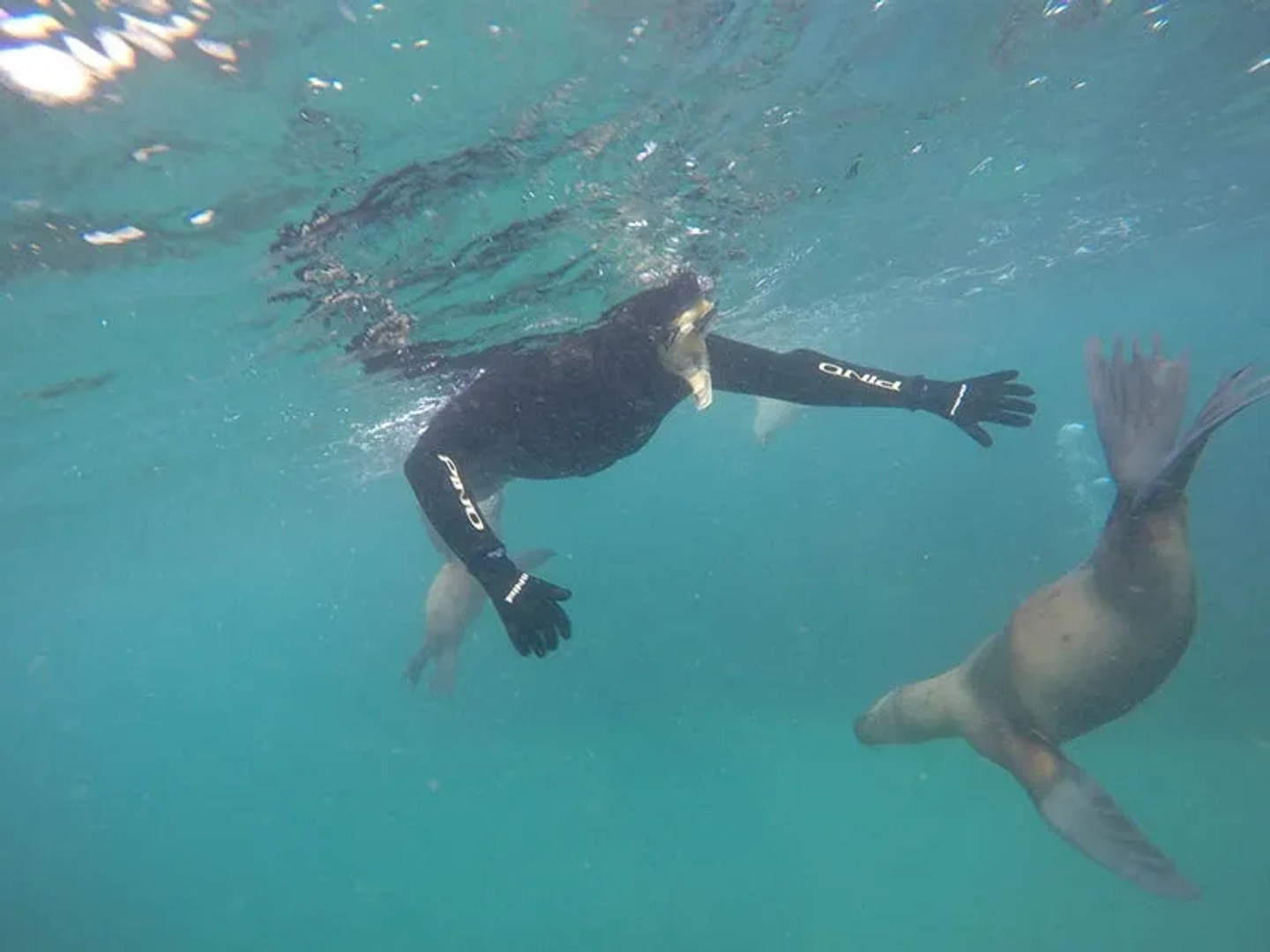 Una vez finalizada la instrucción, te adentrarás en la reserva natural de Punta Loma para nadar y snorkelear junto a una colonia de más de 500 lobos marinos. Aplicando las habilidades adquiridas, podrás moverte con destreza y disfrutar de una interacción cercana y segura con estos curiosos y juguetones animales en su hábitat natural, convirtiendo esta en una experiencia única e inolvidable.