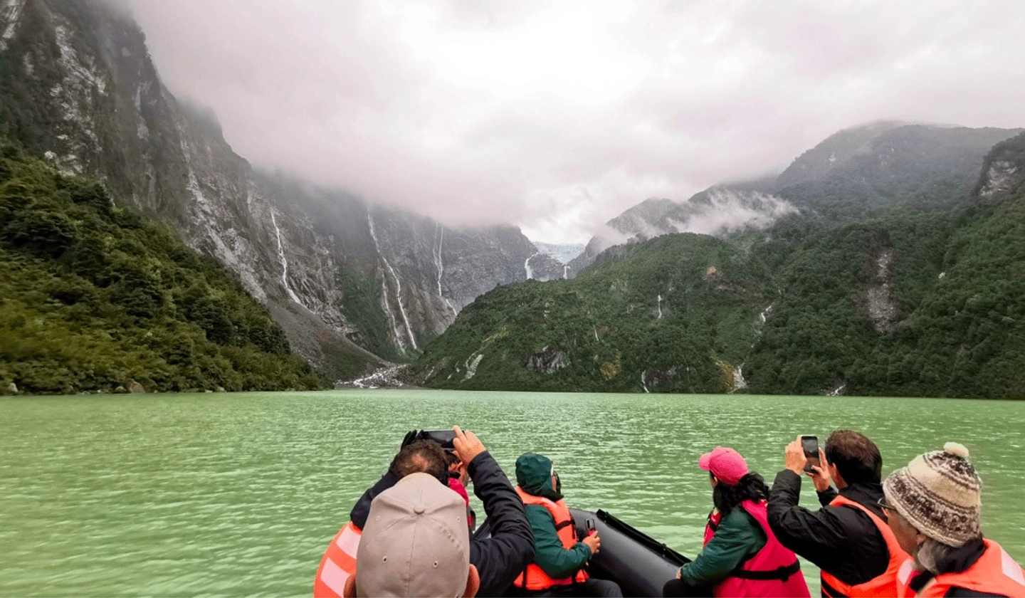 Trekking y navegación en el Parque Nacional Queulat, visita al Salto Padre García y recorrido por Puerto Cisnes.