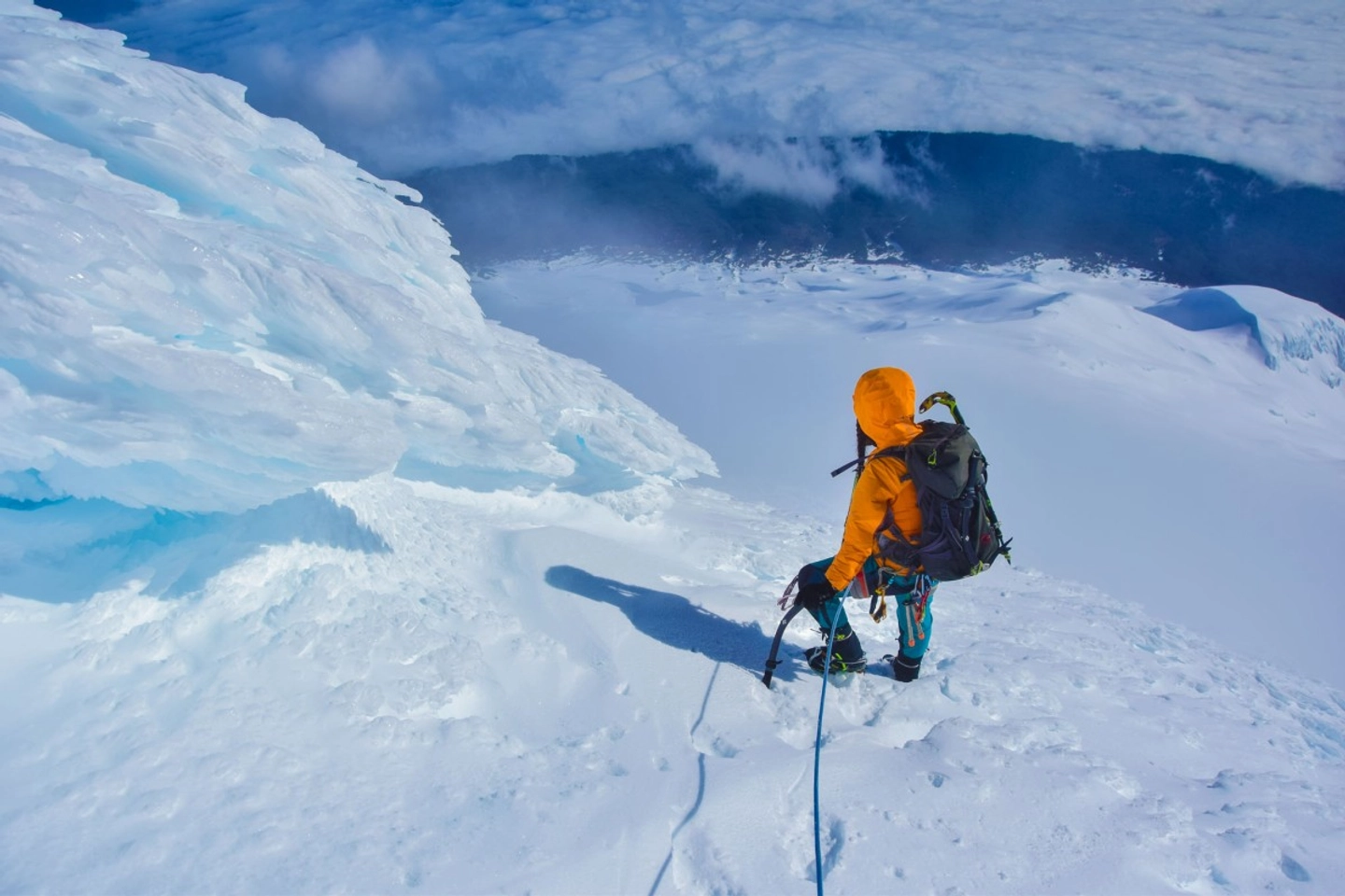 3 HorasÚltima etapa del ascenso, donde se enfrenta la escalada en pared de hielo y nieve antes de alcanzar la cumbre del Volcán Osorno (2,652 msnm).