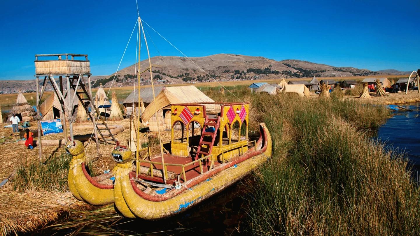 Navegación hacia las islas flotantes de los Uros, donde conocerás su forma de vida, construcción con totora y tradiciones ancestrales.
