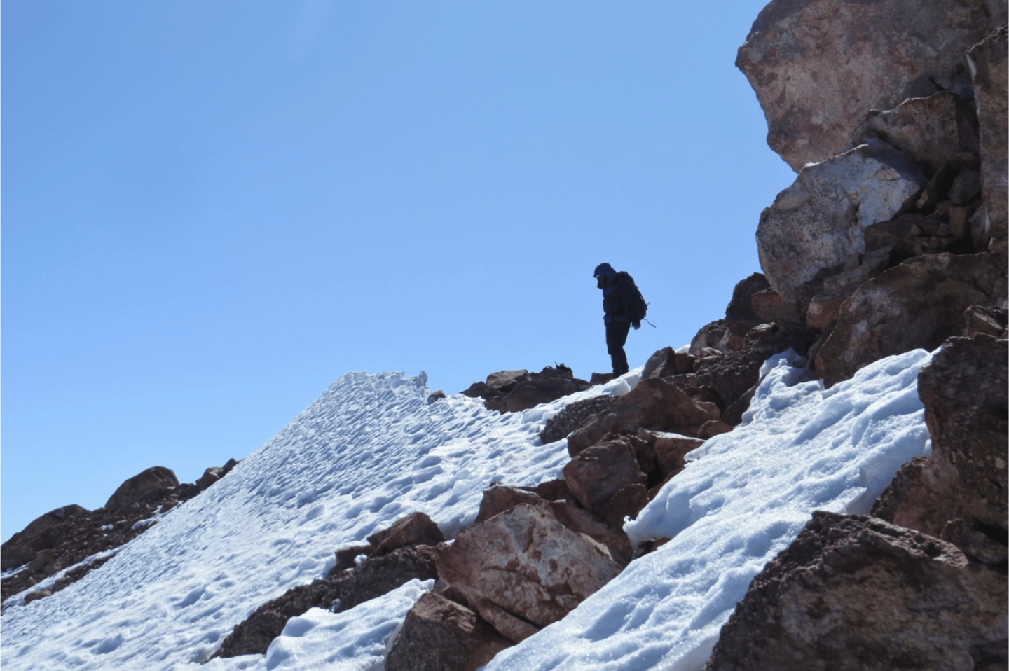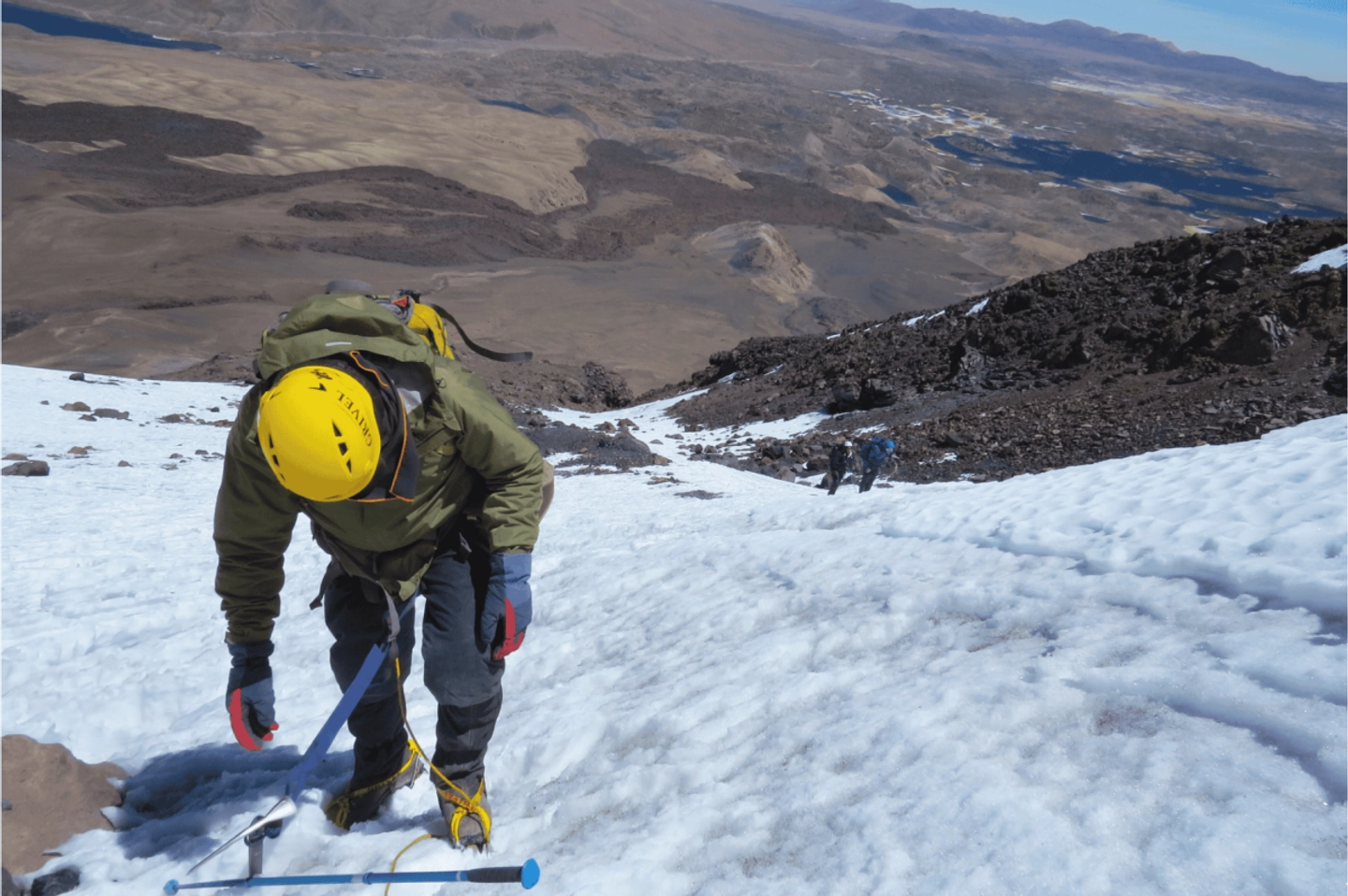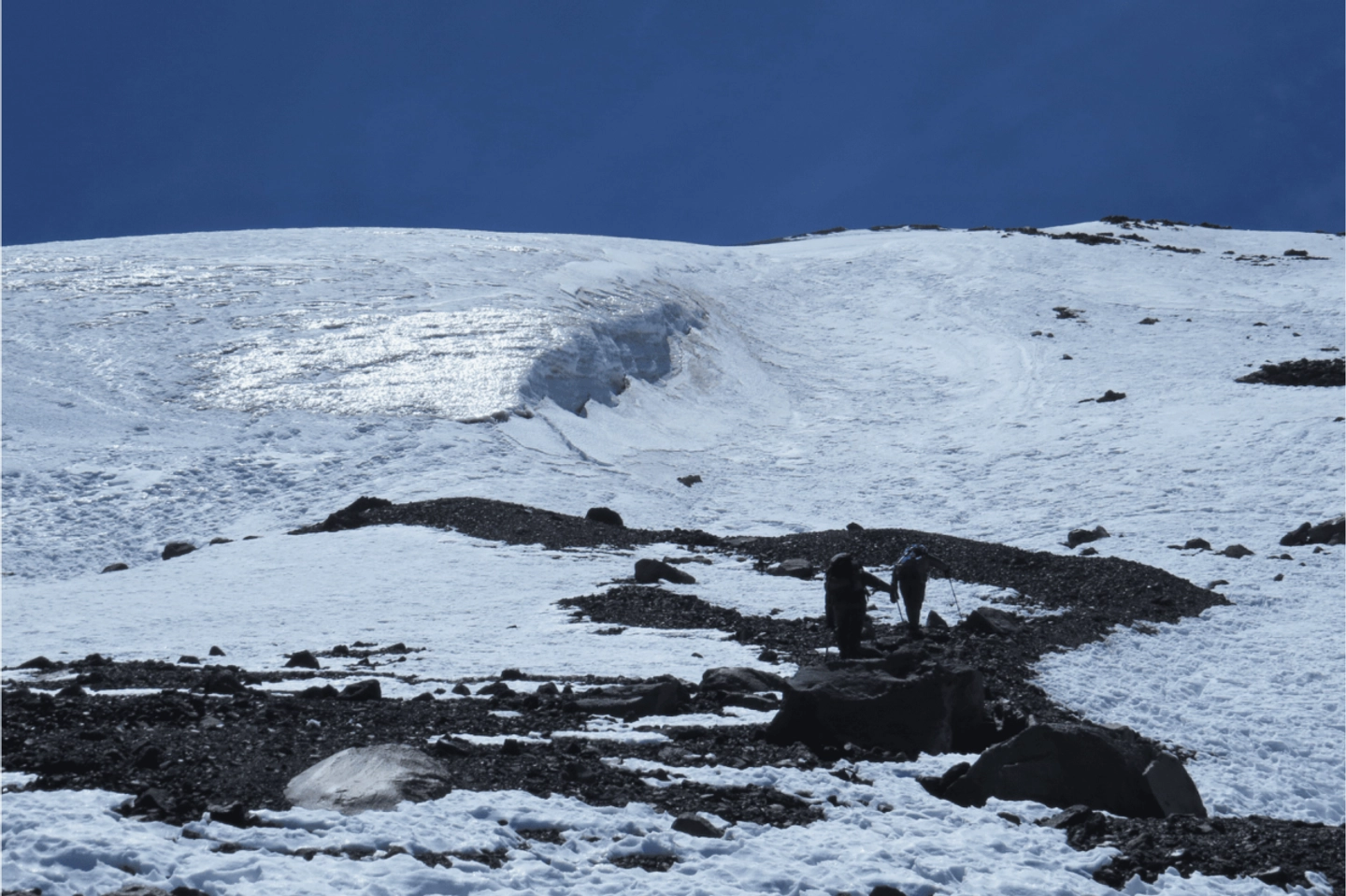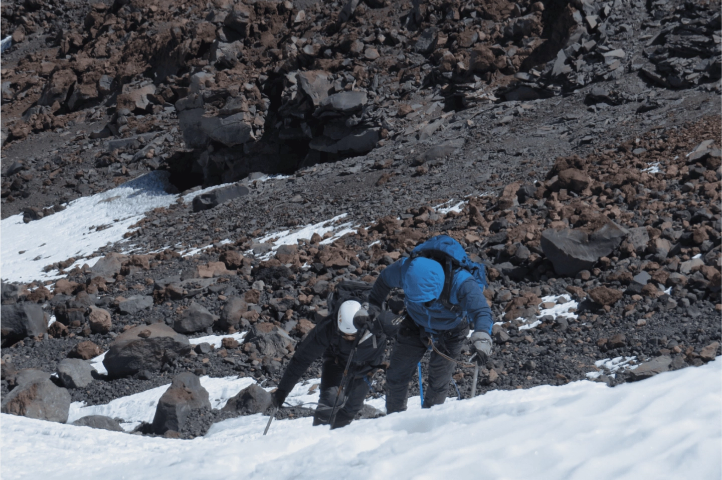 Llegada al campamento base en los faldeos del volcán, luego subir al campamento alto y pernoctar.