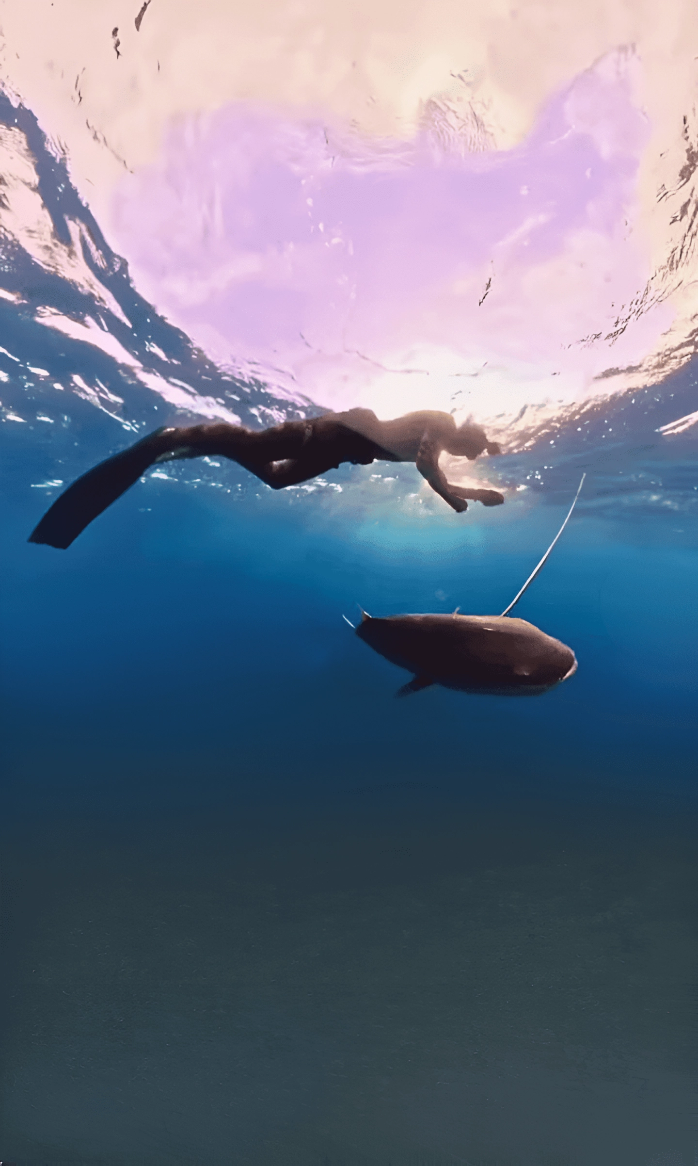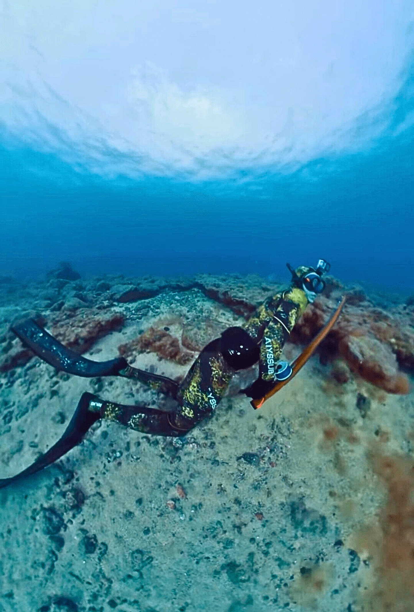 Inmersión práctica en las aguas cristalinas de la bahía, donde aprenderás a controlar tu respiración, nadar eficientemente y utilizar el arpón bajo la supervisión de un instructor.