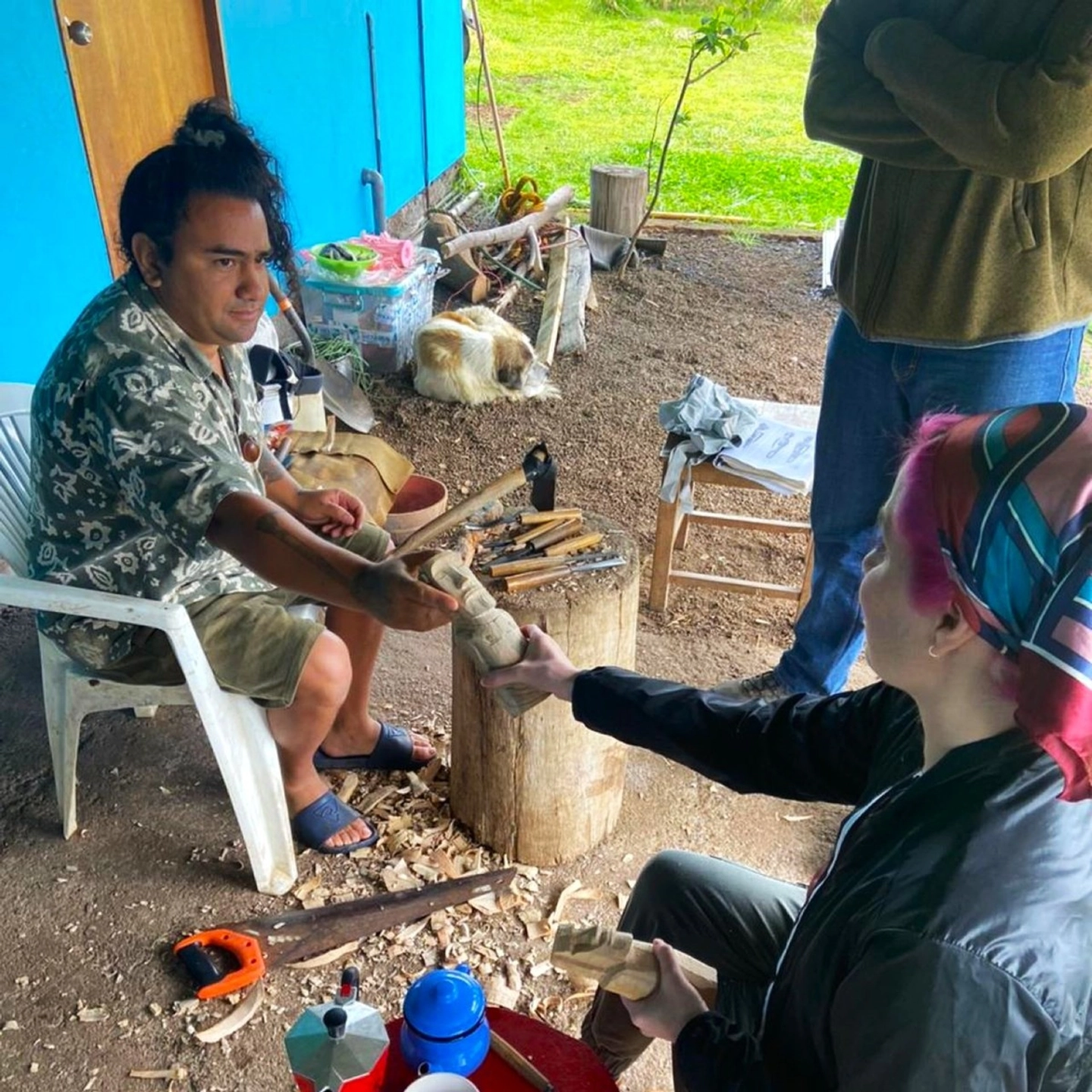 Llegada al taller del maestro tallador local, ubicado en Hanga Roa. Presentación de la actividad y breve introducción sobre la historia y el significado de los moai.