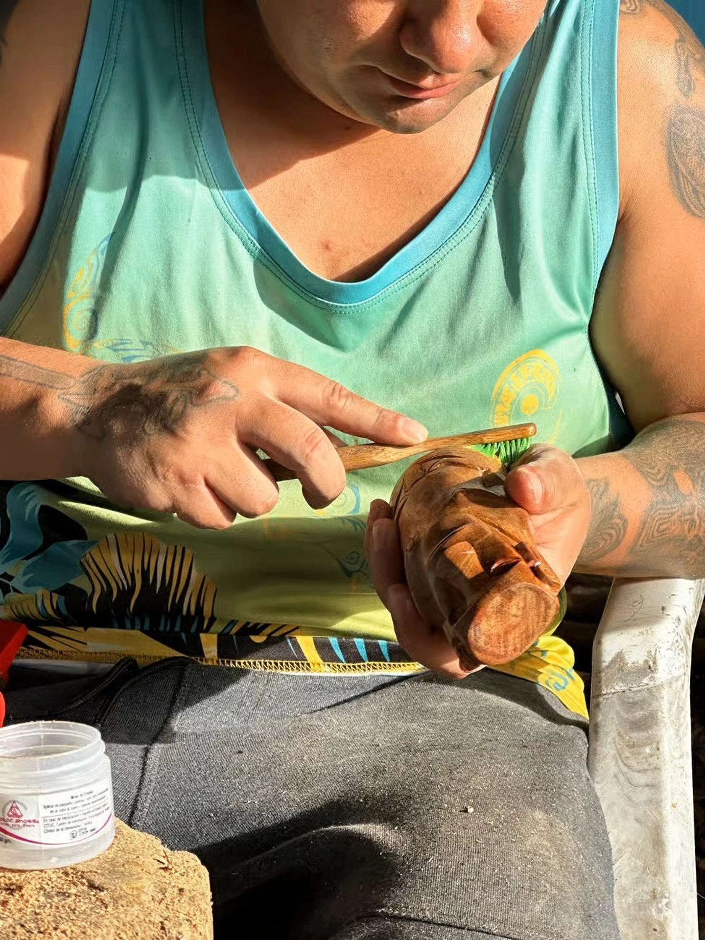 30 MinutosSesión de fotos con las esculturas terminadas y entrega de tu moai tallado a mano como recuerdo personal.