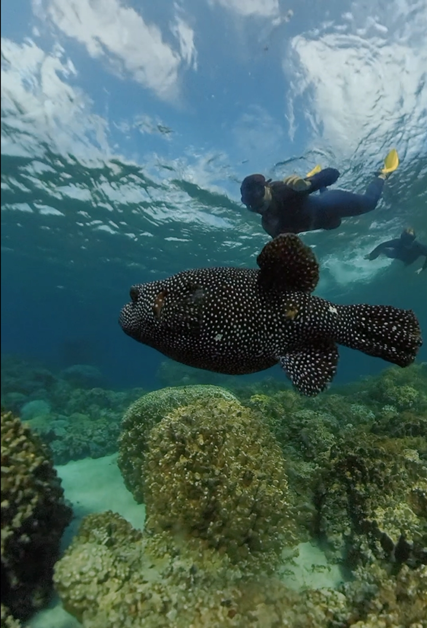 20 MinutosInicio de la actividad con una charla técnica sobre seguridad y uso del equipo. Posteriormente, vivirás una inmersión guiada en el arrecife de coral, nadando entre peces endémicos y observando los moáis sumergidos. Se realizarán pausas para tomar fotografías y videos digitales.