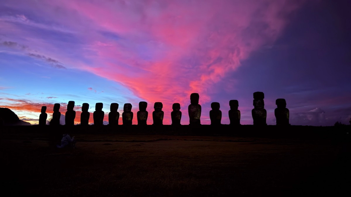 Vive la magia del amanecer en Ahu Tongariki, donde quince moai se iluminan con los primeros rayos de sol. Una experiencia única que combina naturaleza, cultura y espiritualidad en Rapa Nui.