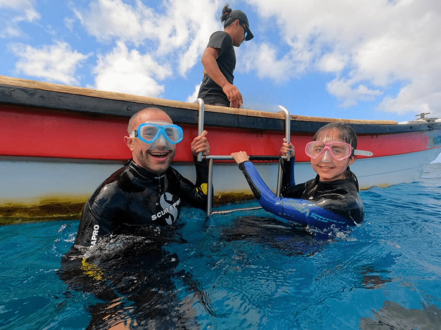 Partida hacia el arrecife Vai a Heva, ubicado a 3 minutos mar adentro.