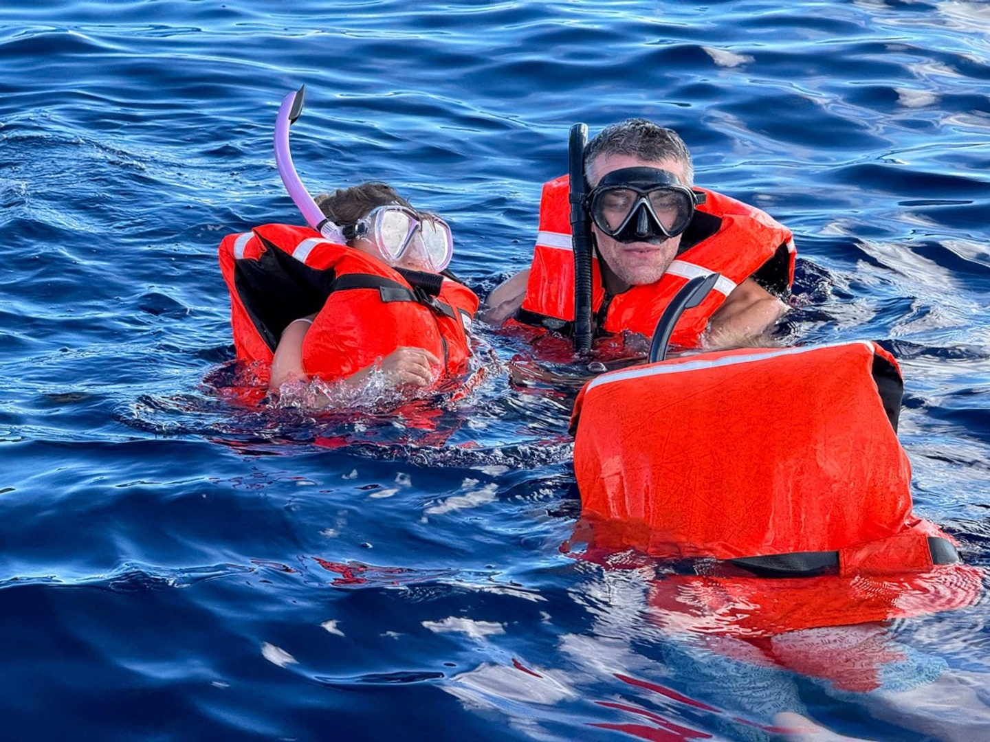 Trayecto marítimo con vistas panorámicas y entrega del equipo de snorkel a los turistas.