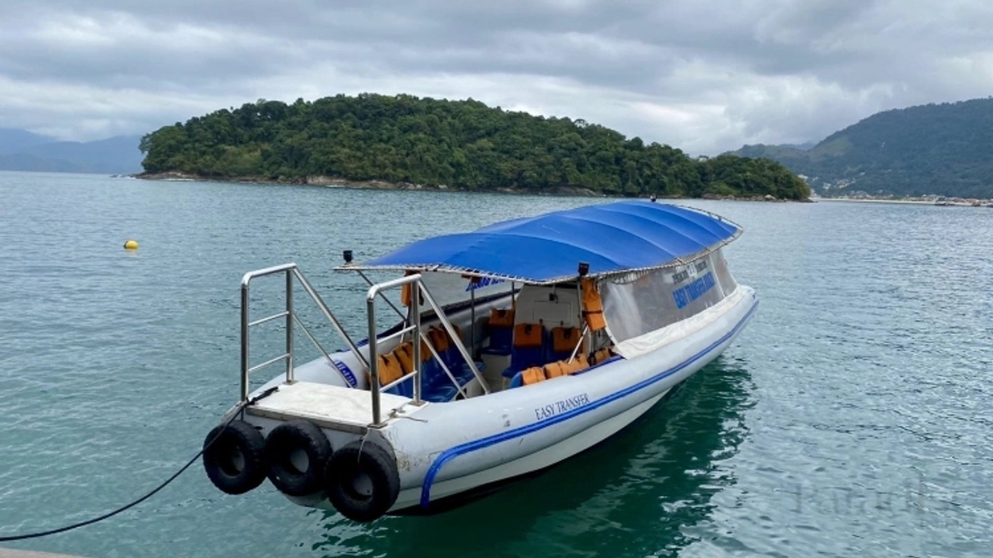Aborda la embarcación y realiza el cruce marítimo desde Conceição de Jacareí hasta Vila do Abraão, uno de los principales accesos a Ilha Grande.