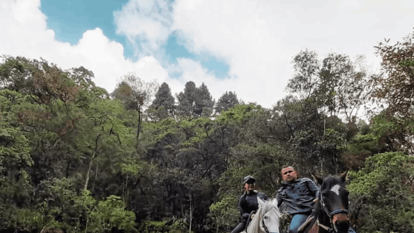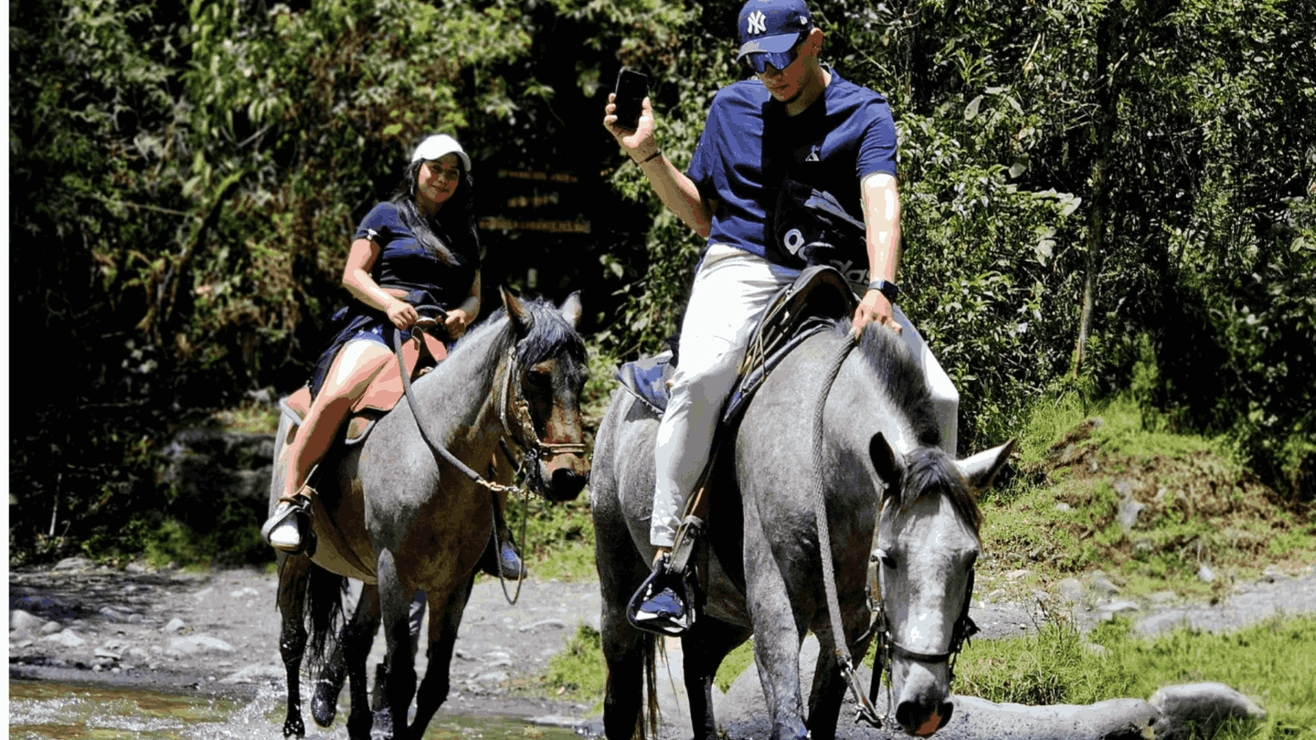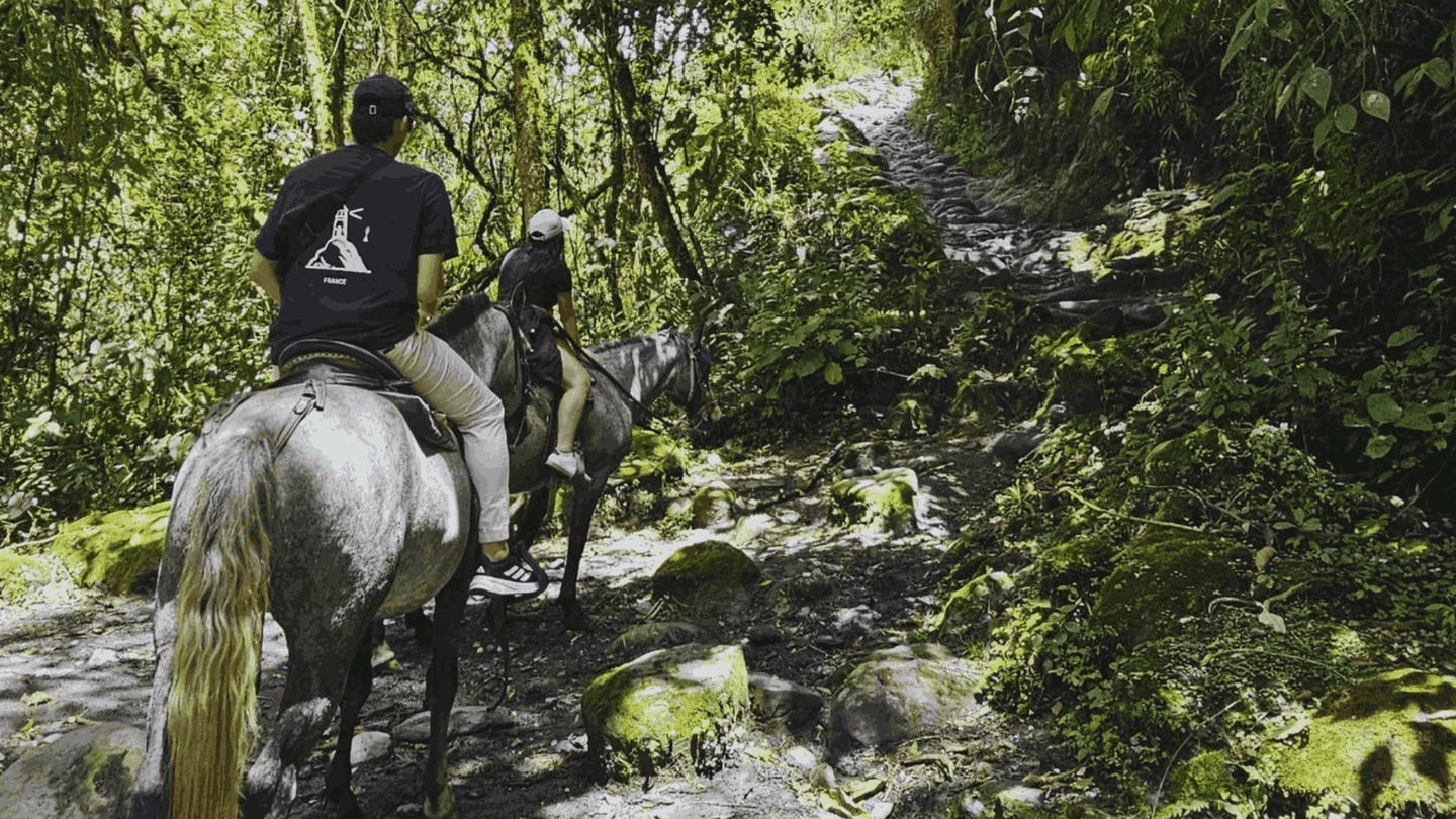 Recorrido a caballo por el Cañón de Palmas y un tramo de bosque natural, conectando diferentes escenarios del Valle de Cocora.