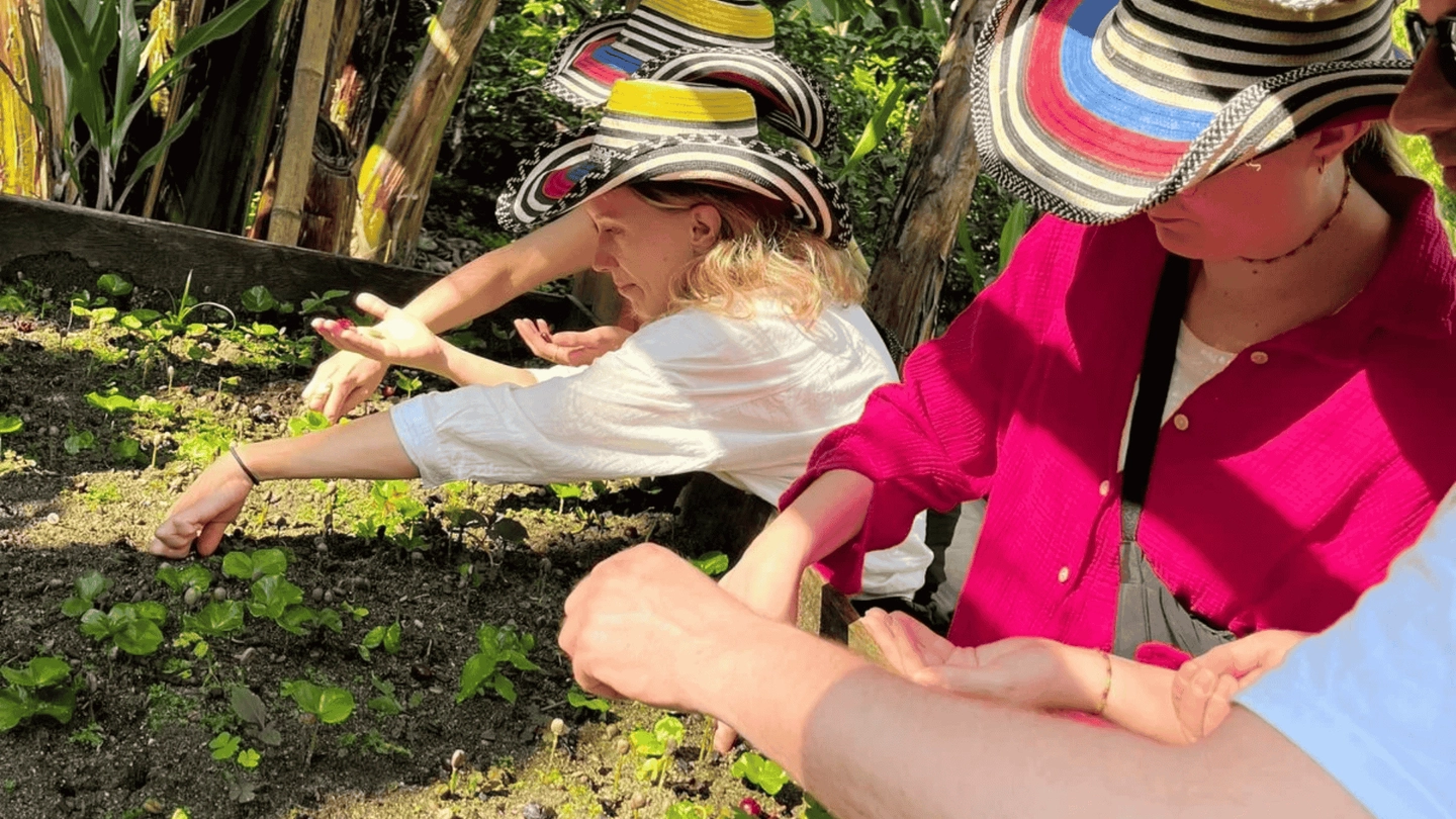 Inicio de la experiencia con un recorrido por la plantación para conocer las variedades de café arábica, el manejo del cultivo regenerativo y orgánico, y el punto ideal de madurez del fruto para su cosecha.