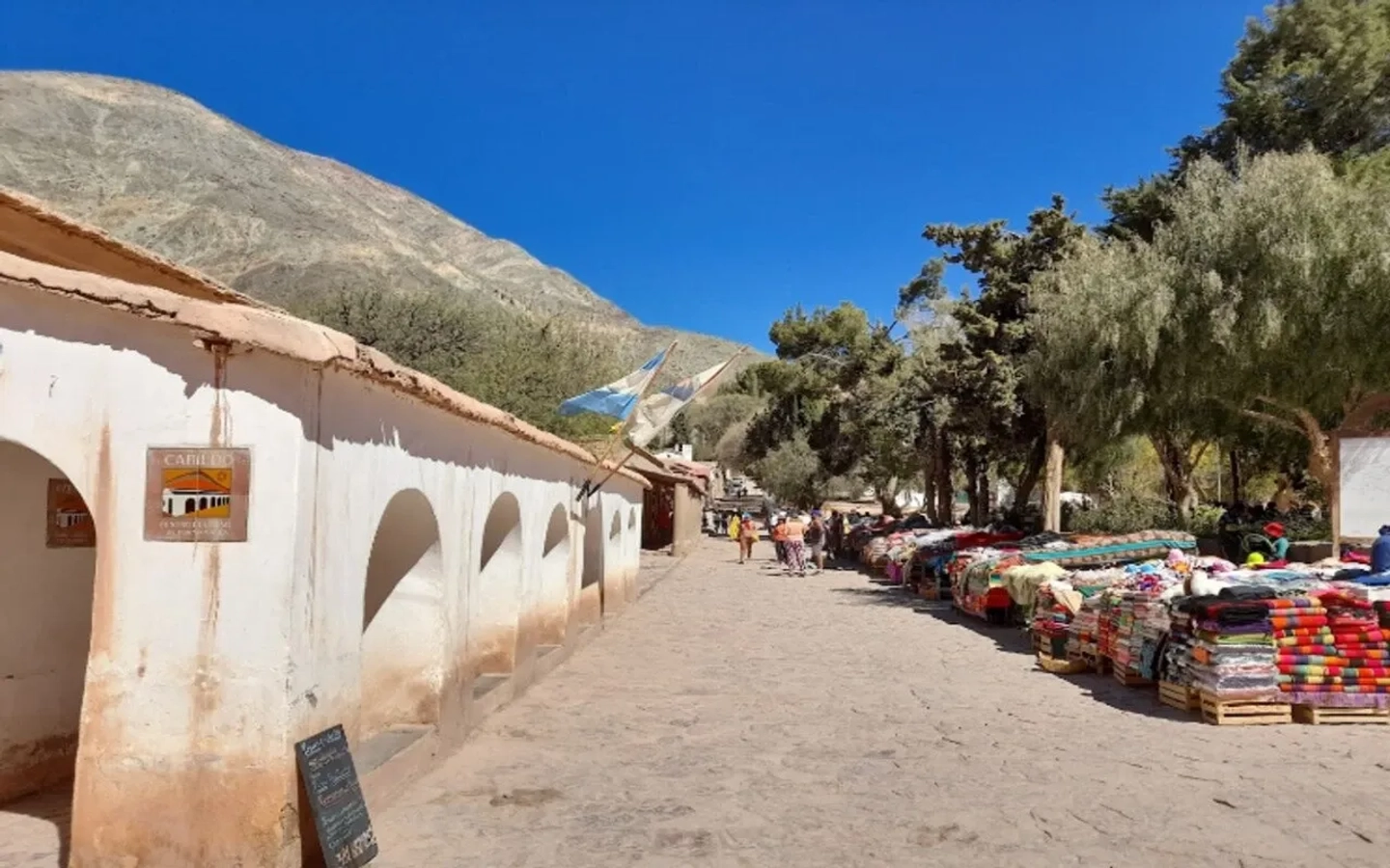Regresamos a Purmamarca y podrás disfrutar de 2 horas libres para explorar la hermosa ciudad y almorzar. Imponente Cerro de los 7 Colores anidado en el corazón de la ciudad con sus calles estrechas y empedradas y casas de adobe y barro.