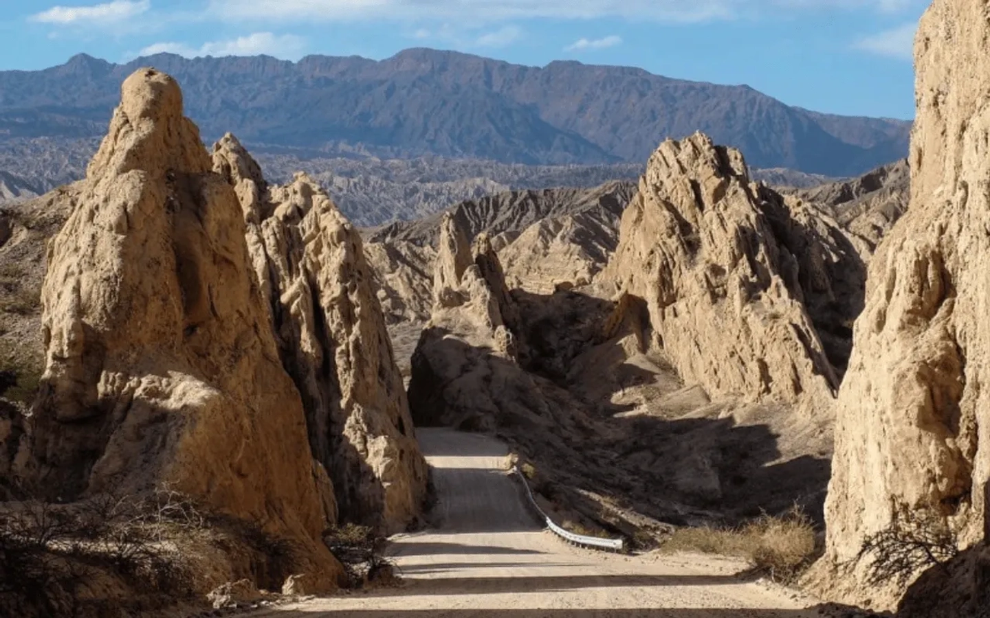 Imponente Cuesta del Obispo y Valle Encantado, rodeado de montañas. Luego de Piedra del Molino (3.400 m.s.n.m.) se cruza el Parque Nacional Los Cardones.