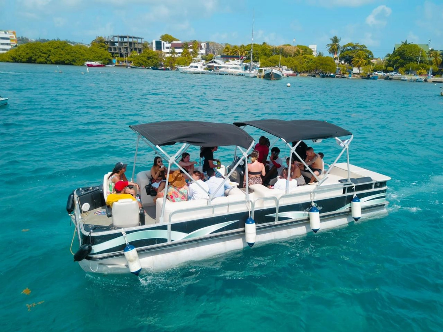Disfruta un alquiler de pontón privado en San Andrés Islas y recorre la bahía durante una jornada completa.