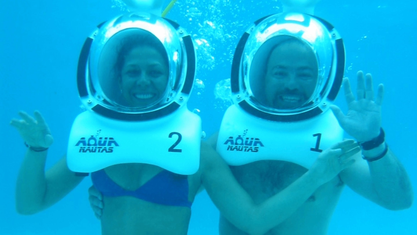 - Casco escafandra especial para la caminata submarina.
