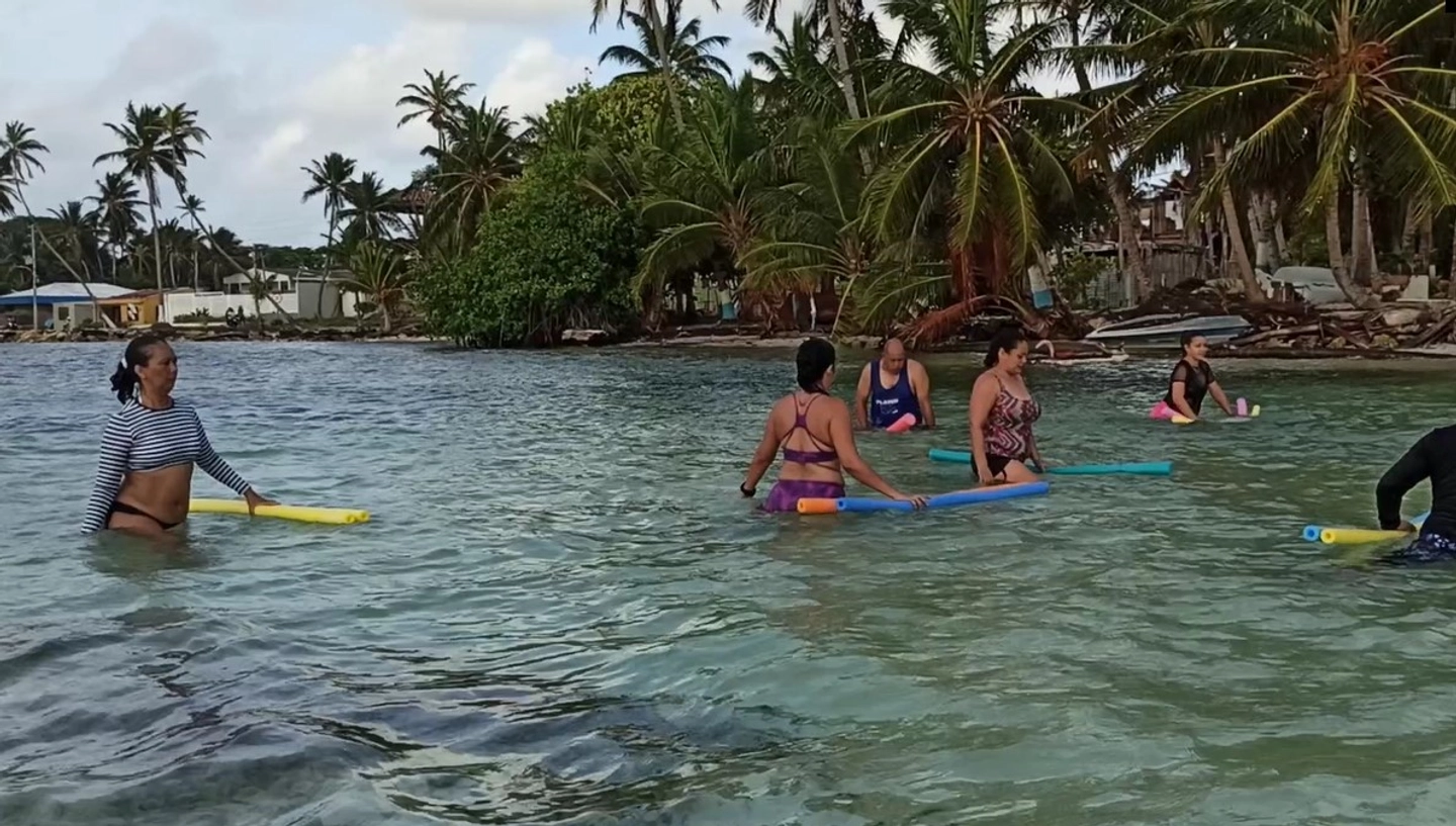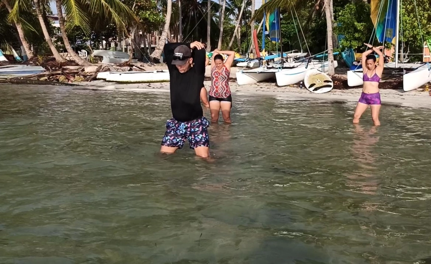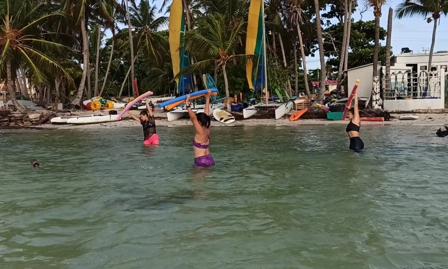 Disfruta una terapia acuática al amanecer en Cayo Acuario y Haynes Cay, en San Andrés. Realiza ejercicios de fuerza, flexibilidad, trabajo cardiovascular y relajación en el mar y la playa, guiados por un fisioterapeuta bilingüe.
