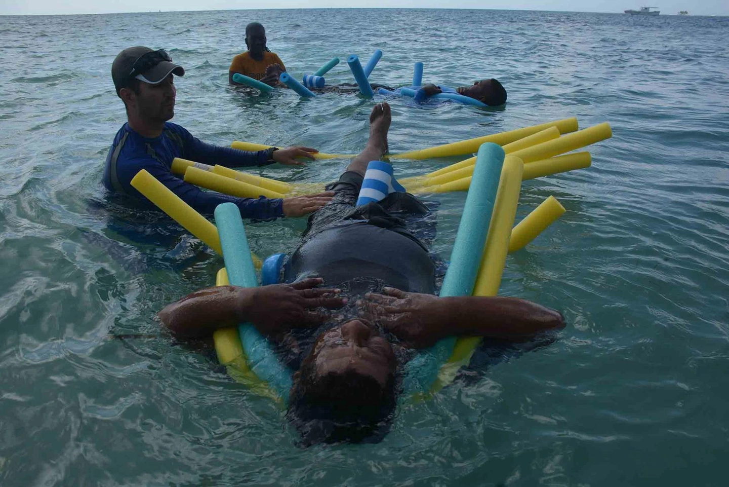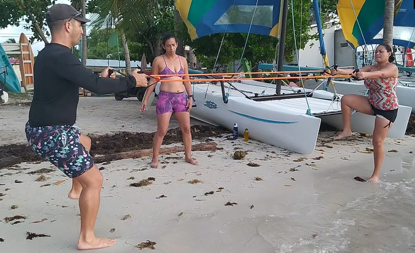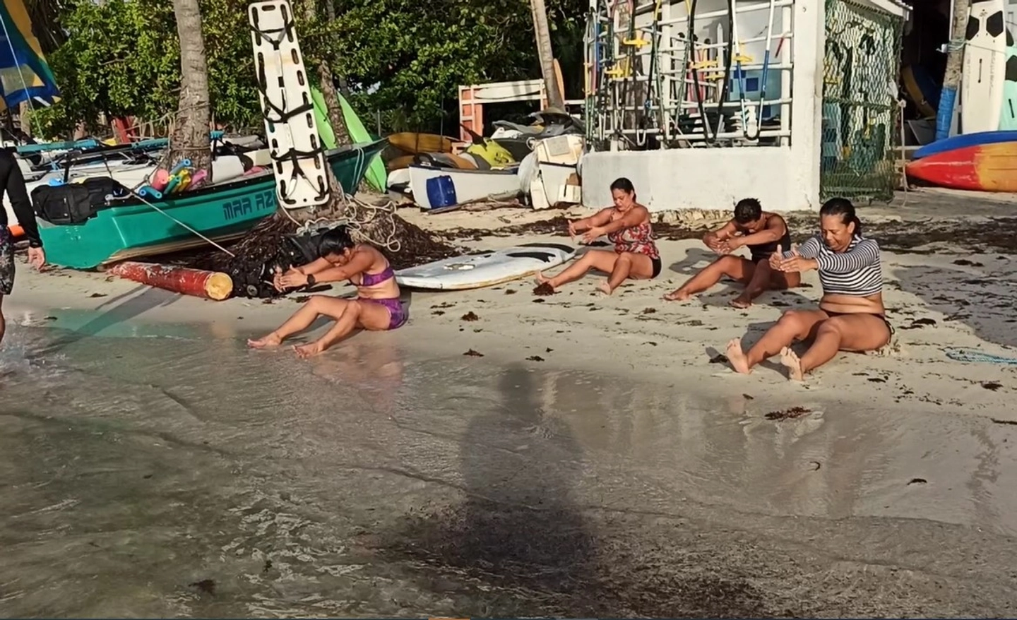 Disfruta una terapia acuática al amanecer en Cayo Acuario y Haynes Cay, en San Andrés. Realiza ejercicios de fuerza, flexibilidad, trabajo cardiovascular y relajación en el mar y la playa, guiados por un fisioterapeuta bilingüe.