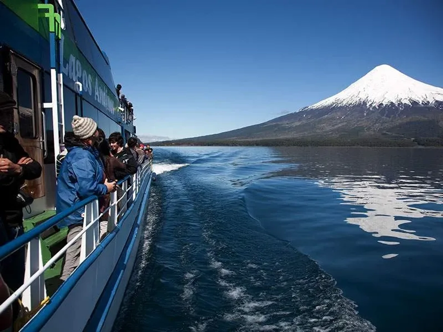 La travesía comienza del lado argentino, navegando por las aguas cristalinas de los lagos patagónicos. Navegarás rodeado por la imponente Cordillera de los Andes, admirando bosques nativos y picos nevados que fueron testigos del paso de los pueblos indígenas huilliches y mapuches. Este primer tramo te sumerge en la historia y la belleza natural de la Patagonia, preparando el escenario para la emocionante continuación del viaje.