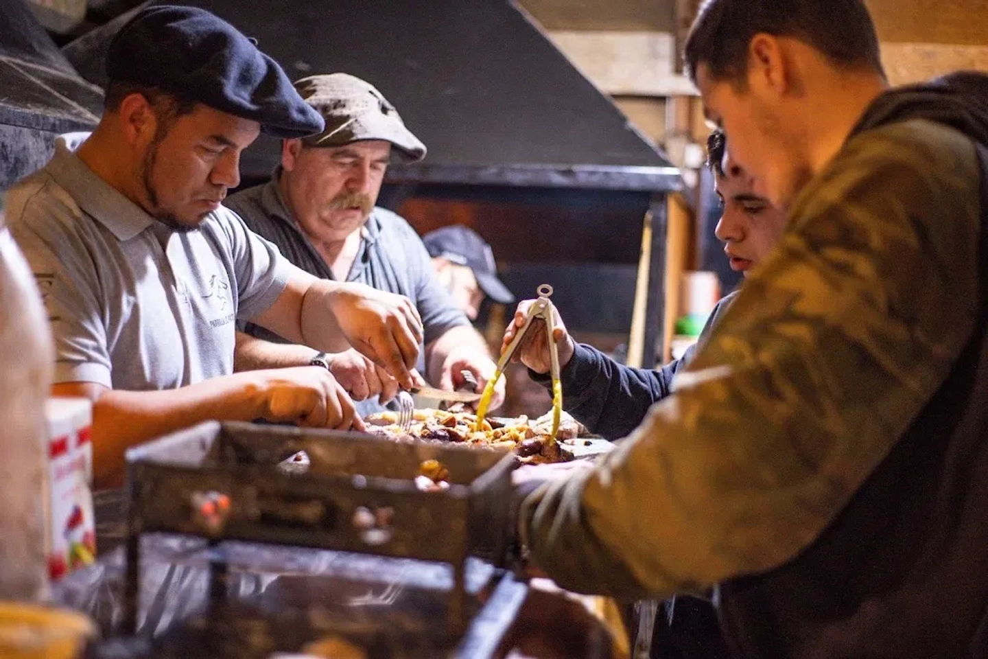 - Cena: empanadas, asado patagónico, ensaladas, papas fritas, postre (flan con dulce de leche). El menú puede varia de acuerdo a la tempirada a ceeiterio del organizador.