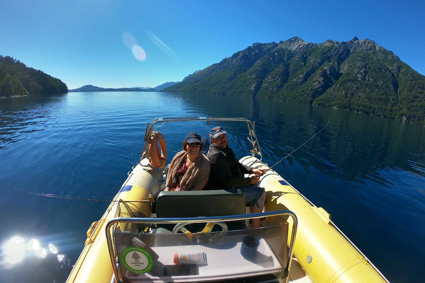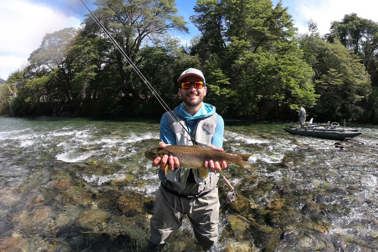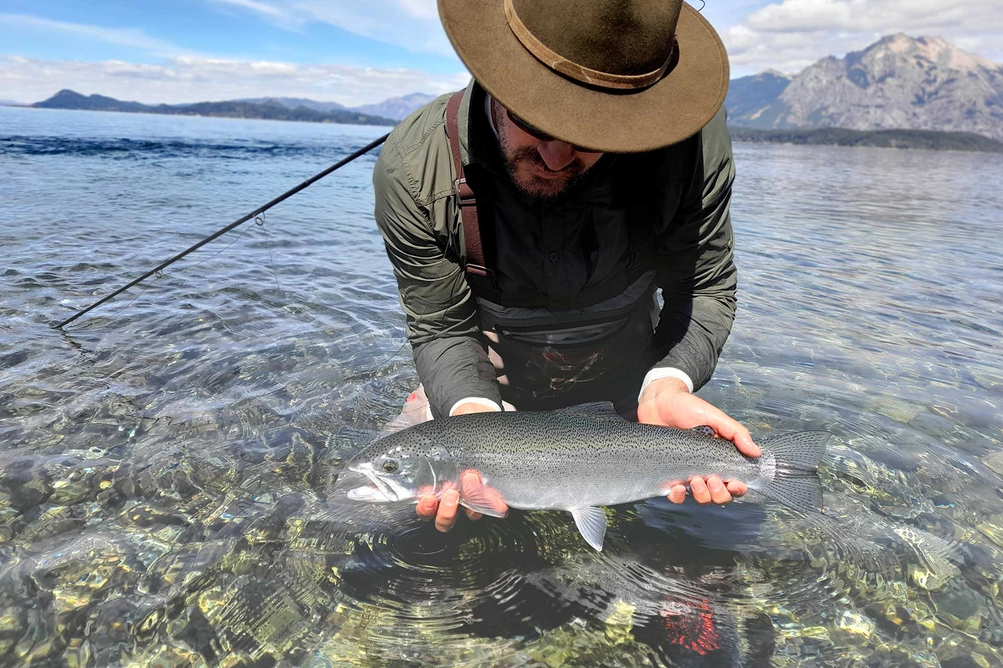 El día comienza navegando por las aguas cristalinas del majestuoso Lago Nahuel Huapi. A bordo de un barco bien equipado y guiados por un especialista local, exploraremos bahías y orillas inaccesibles en busca de los mejores puntos de pesca. Usando técnicas de trolling y spinning, nos enfocaremos en la captura de grandes ejemplares de Trucha Arcoíris y Trucha Marrón, disfrutando del paisaje espectacular de montañas y bosques que rodean el lago.