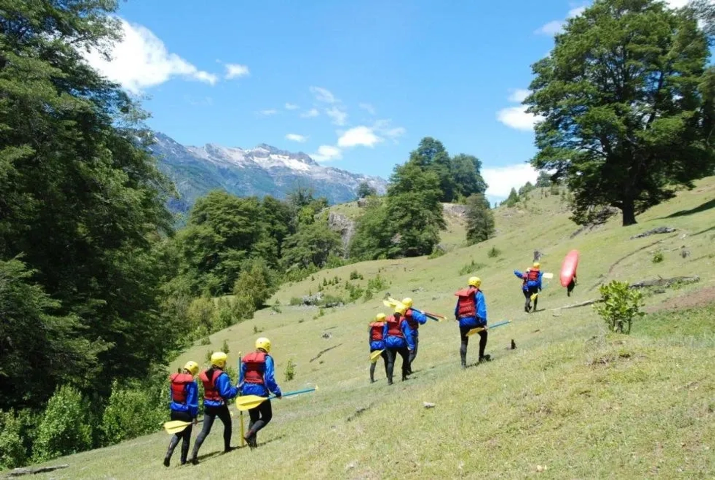 La jornada comienza con un encuentro en nuestro punto base, donde serás recibido con la característica hospitalidad patagónica. Aquí, nuestros guías expertos te proporcionarán una charla de seguridad completa y todo el equipo necesario: traje de neopreno, casco y chaleco salvavidas. Una vez listos, emprenderemos un viaje escénico en vehículo, adentrándonos en los imponentes paisajes de la cordillera de los Andes hasta llegar al punto de partida a orillas del río, preparándote para la adrenalina que está por venir.