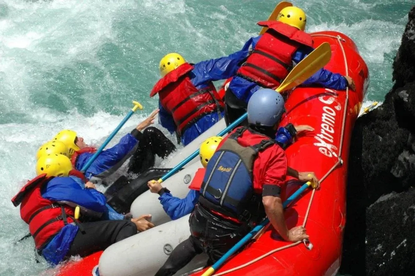 - Kayak de apoyo, equipo de río (chaqueta impermeable, traje neoprene)