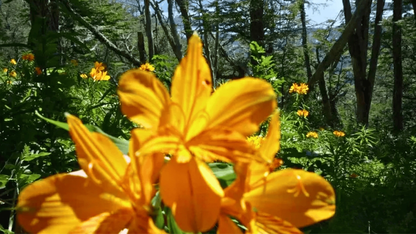 A medida que continúa la caminata, el sendero atraviesa un bosque de lengas y sectores de amancay, mostrando la transición de la flora andino patagónica.