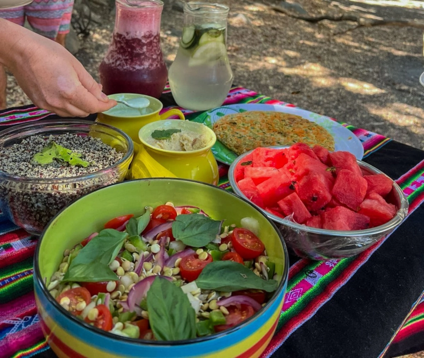 40 MinutosAlmuerzo vegetariano saludable servido en medio del bosque, acompañado de infusiones de hierbas nativas.