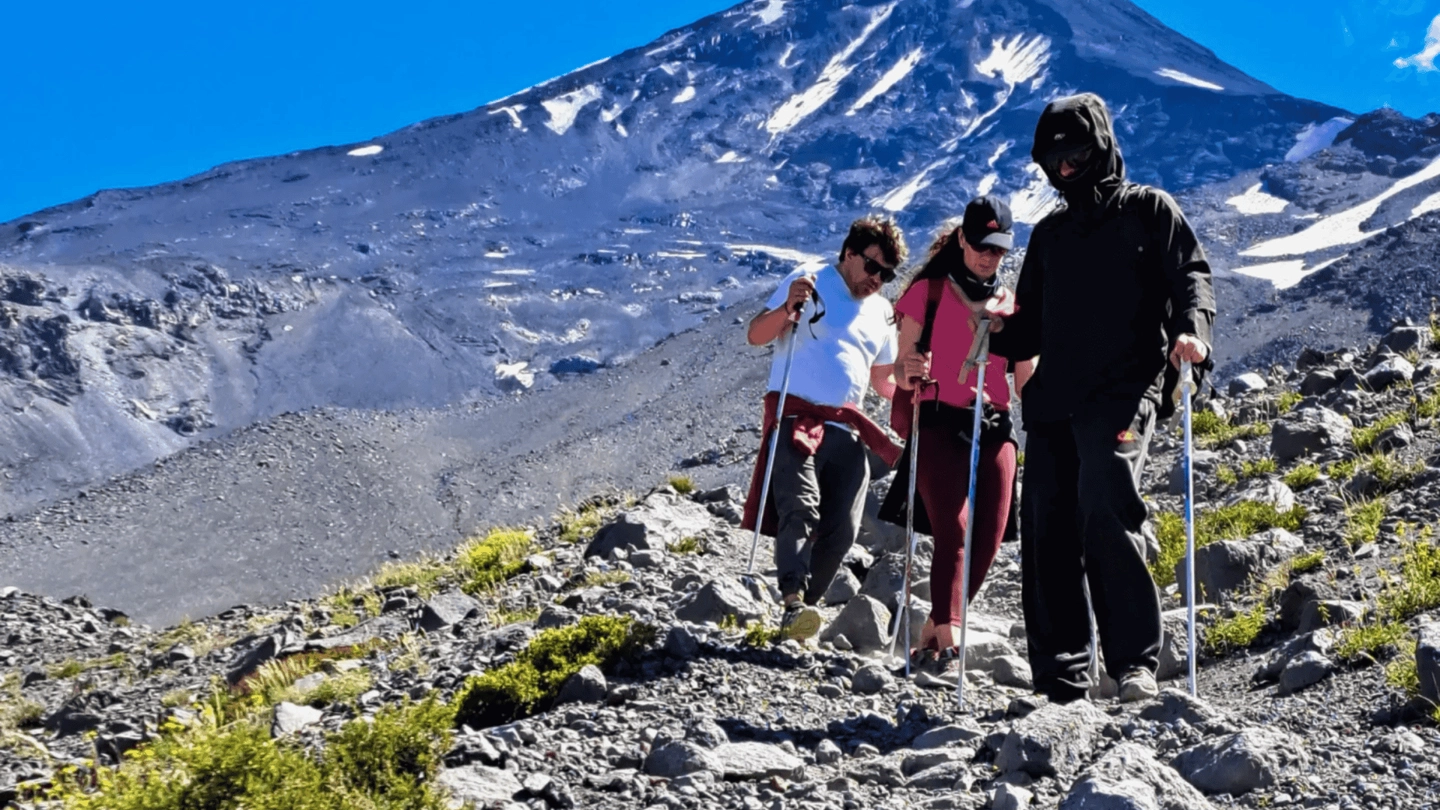 La ruta combina bosque patagónico, terreno volcánico y un ascenso exigente hasta los 2315 msnm. Es una salida de día completo pensada para quienes buscan caminatas desafiantes con vistas de alta montaña.
