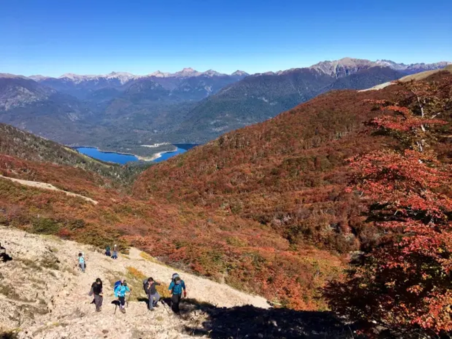 Después de pasar por el área forestal, el terreno cambia y enfrentamos el tramo final de la subida a través de pedregales de gran altitud. El esfuerzo se recompensa al alcanzar la cima del Cerro Mallo. Desde la cima, disfrutarás de vistas panorámicas incomparables del Lago Lácar y de la majestuosa cordillera, para luego iniciar el descenso por el mismo camino.