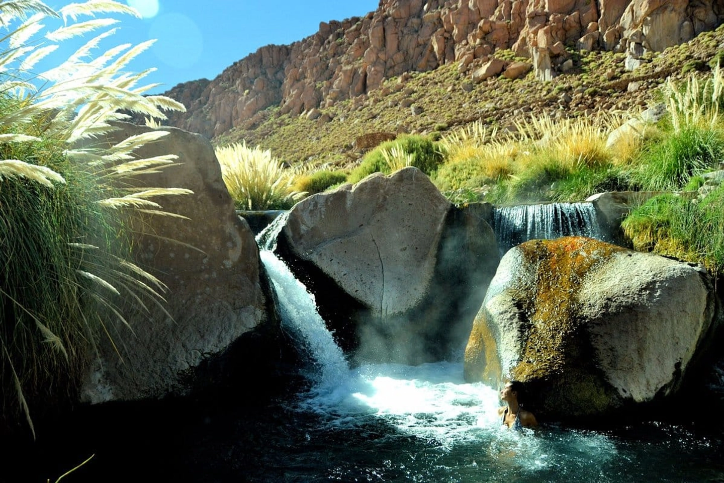 Transporte a las Termas de Puritama desde San Pedro de Atacama para disfrutar de piscinas termales naturales rodeadas de cerros, vegetación nativa y un entorno ideal para la relajación.