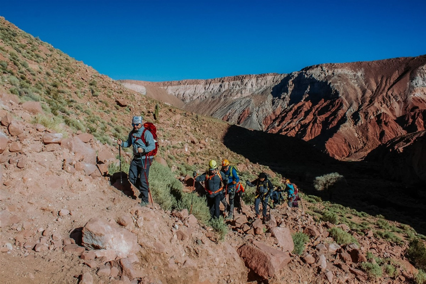 Comienza la caminata descendiendo por el paisaje andino, con vistas espectaculares, y la posibilidad de observar flora y fauna local.